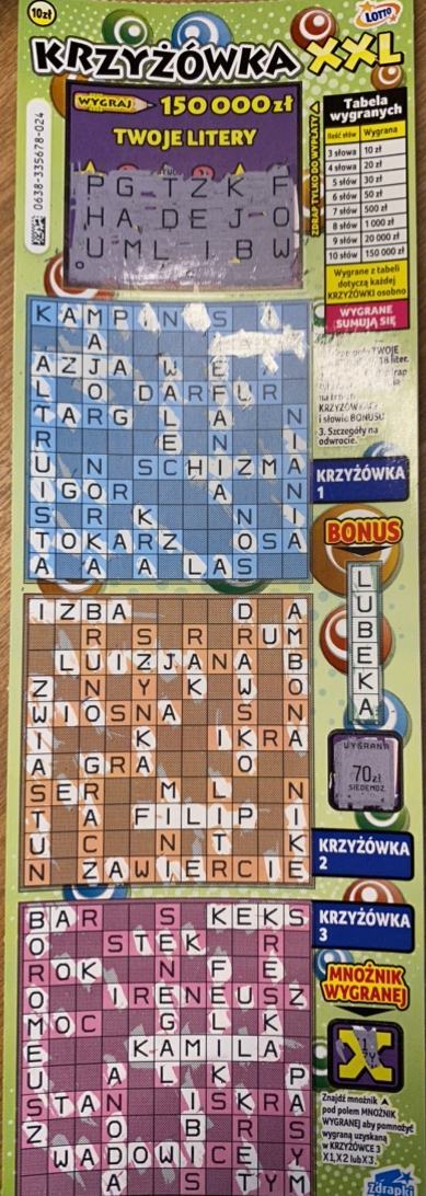 Dziś 3 szt od nr 01 do nr 03 dało 40zł w krzyzówce nr 03 ostatnio bardzo cieniutko w XXL cokolwiek trafić
