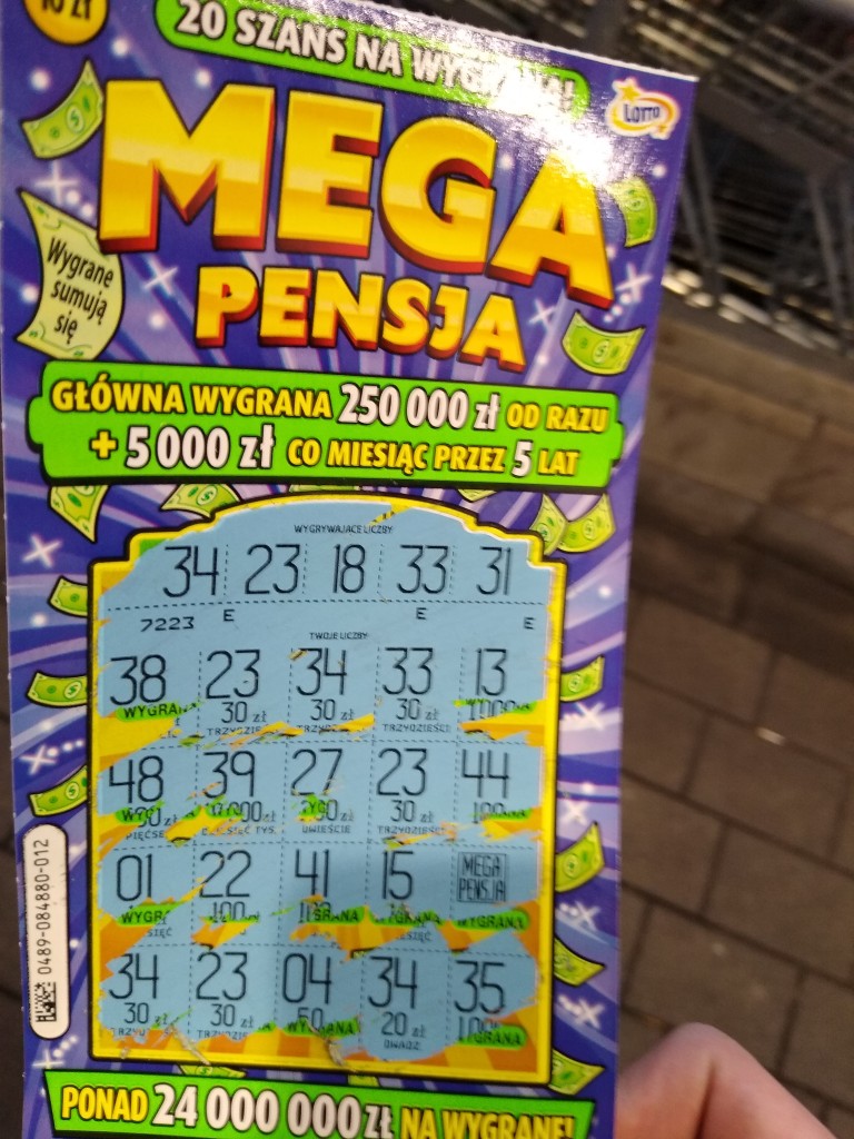 Kupione 3 sztuki . Nr 1 pusty , nr 25 zwrot , a w numerze 3 trafione 50 dziko rozbite na 5 dziesiątek