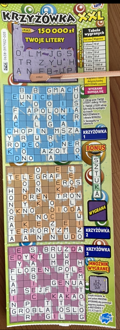 Do WK dobrałam krzyżówkę XXL i w krzyżówce nr 3 miałam 6 słów razy dwa w mnożniku co dało 100 zł