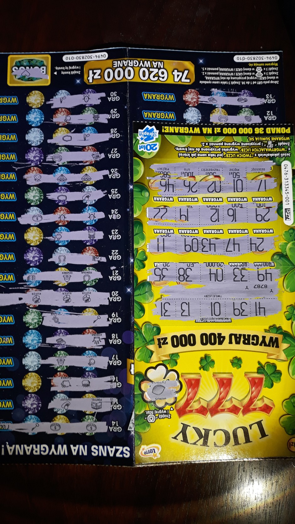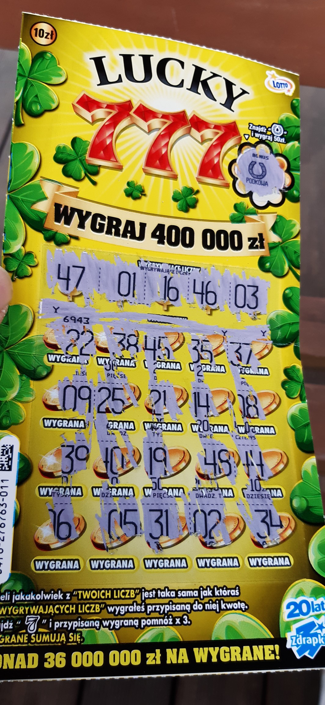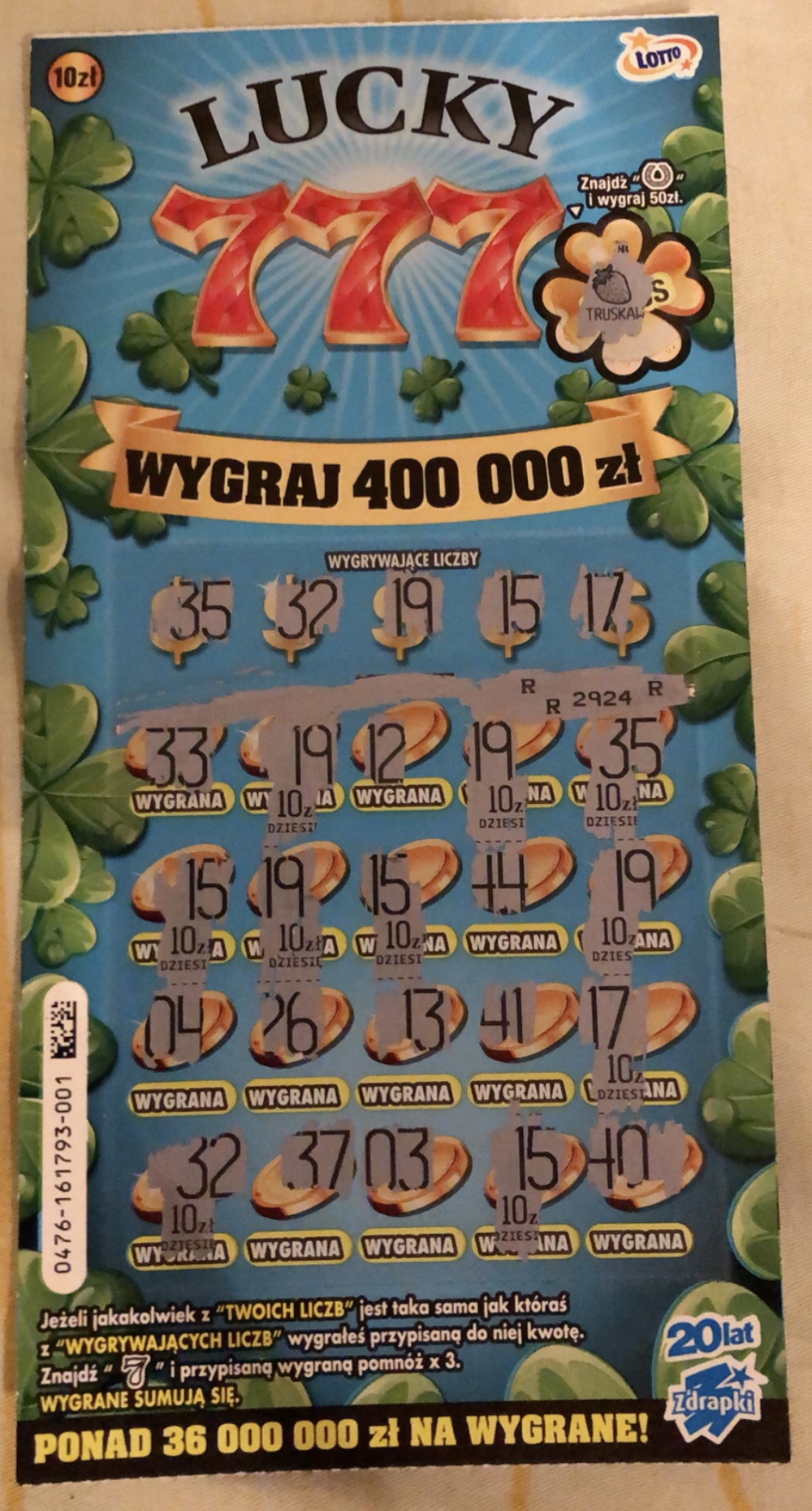 Jako ,że mało się dzieje to wstawiam statystykę dla kupionych Lucky 777. Od startu zdrapki wydrapałem: