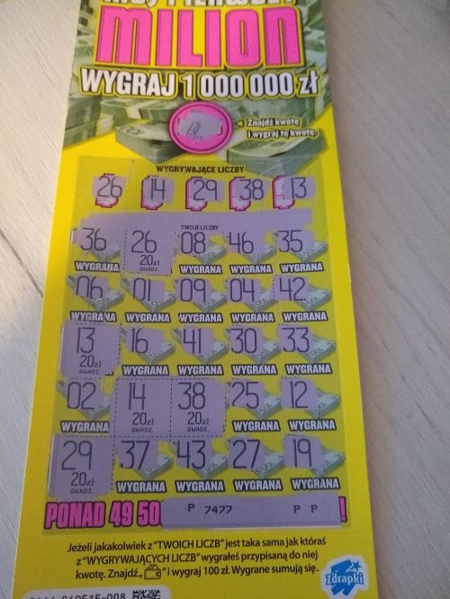 Zdrapka jest w jednej wersji kolorystycznej ? W jakim przedziale jest drugi milion ?