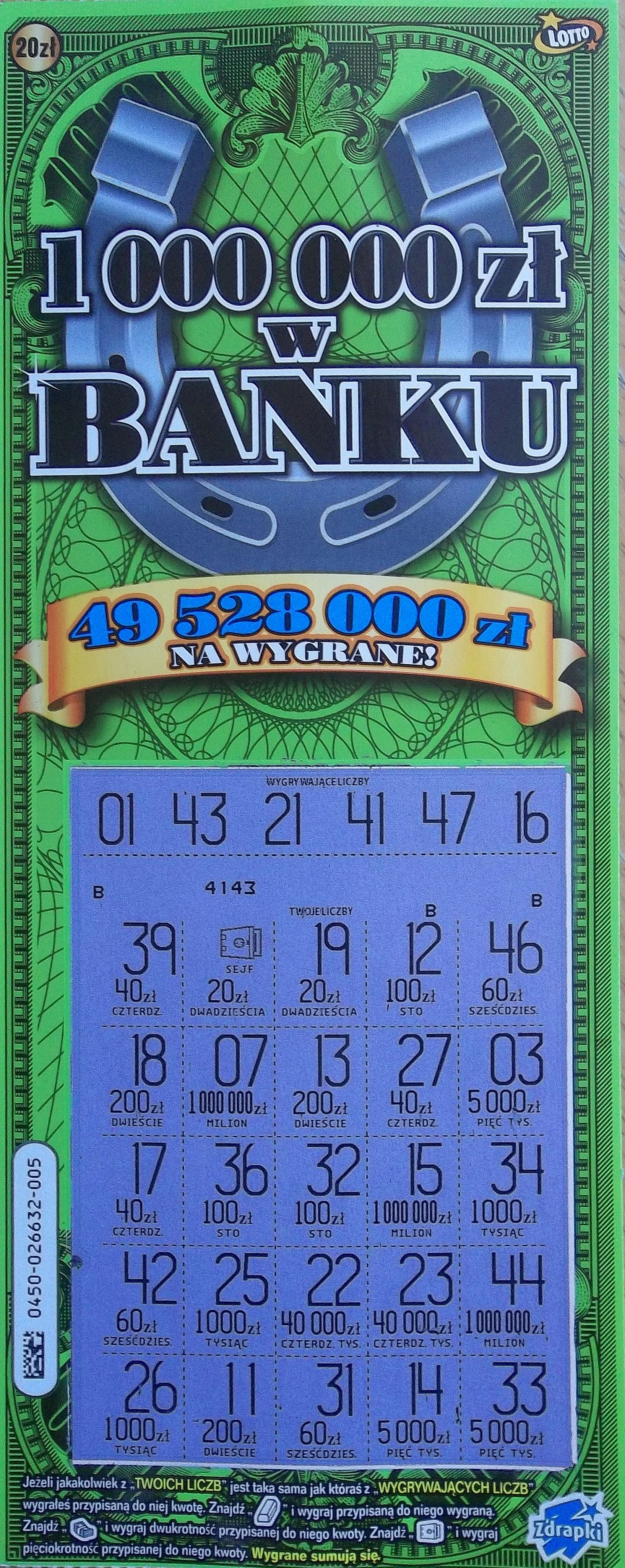 pięknie dziękujęmzielakzielakm pisze: ↑05 lut 2020, 20:00Brawo tereskatereska1975 pisze: ↑05 lut 2020, 15:29Wymieniając wygrane z rana, skusiłam się na jedną sztukę z nr 001, z przebranej już paczki, były chyba ze cztery ostatnie sztuki.Ale opłaciło się,trafiłam 100 zł![]()