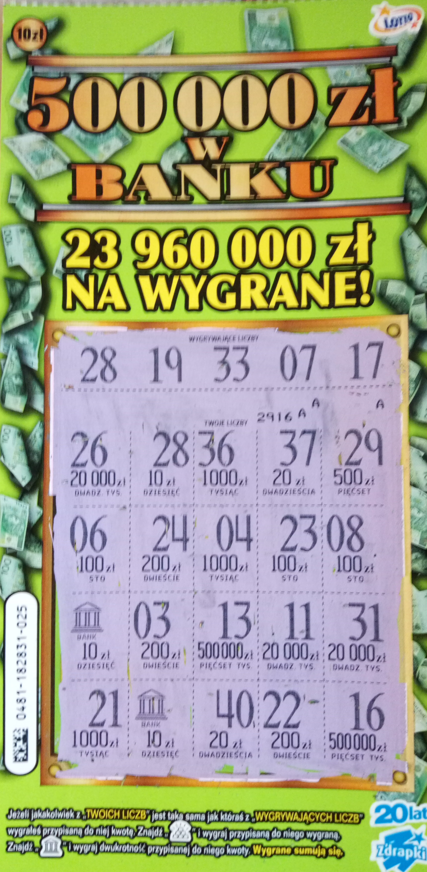 Przy jednej sztuce pokazał się bank a pod nim 20zł (10x2)
