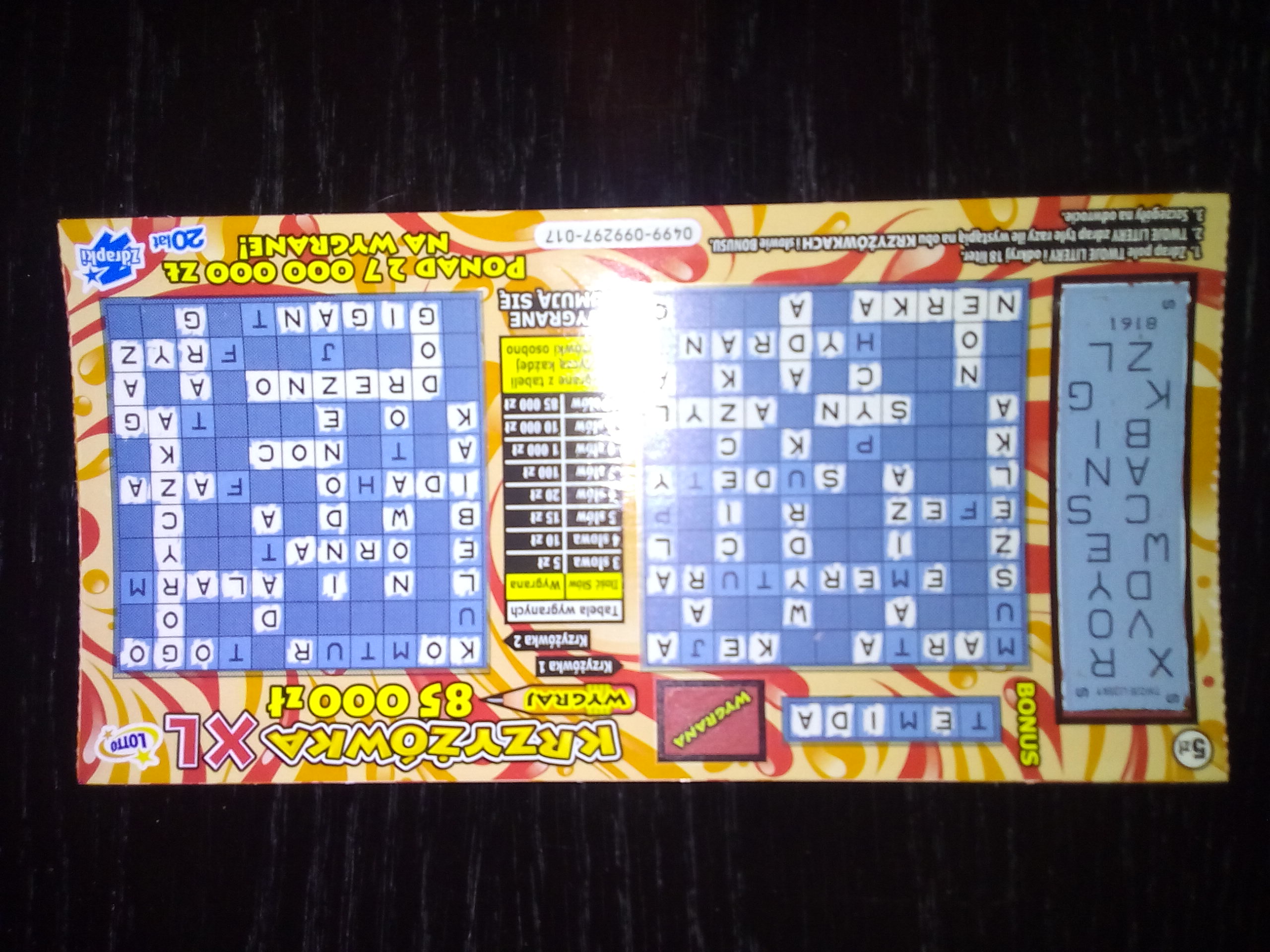 W jednej krzyżówce 20 zł i w drugiej 10 zł, razem 30 zł