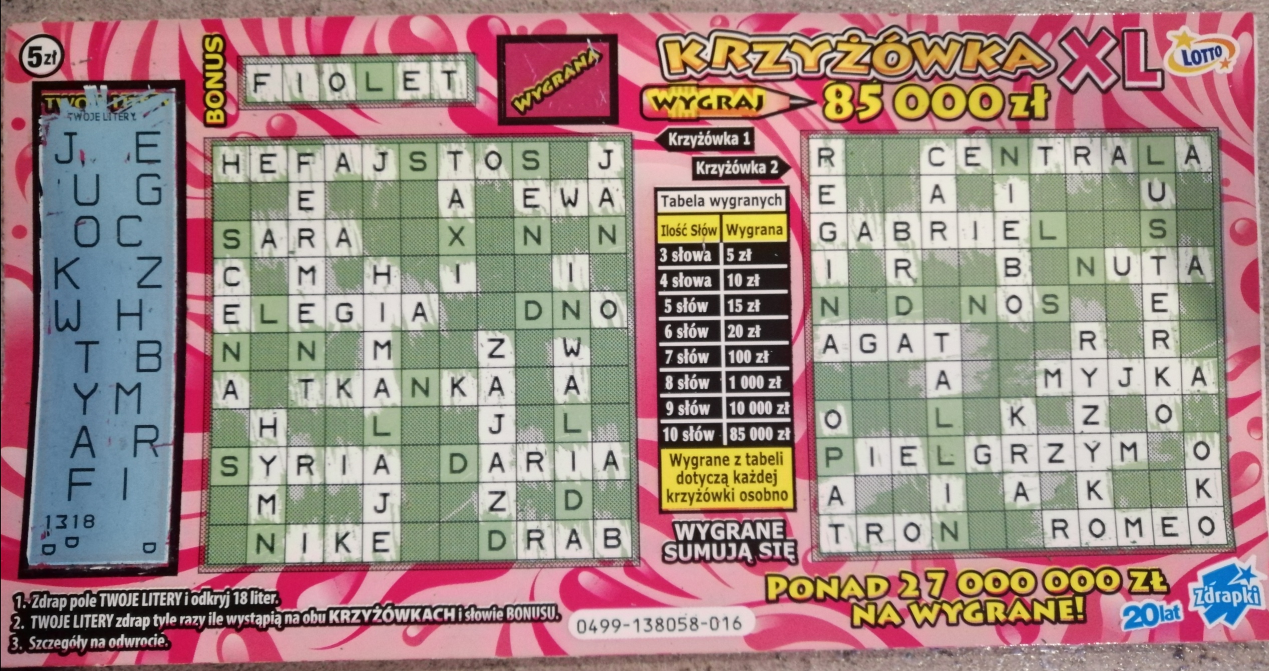 Moja największa wygrana w tej edycji krzyżówki. Poprzednie edycje były zdecydowanie szczęśliwsze.