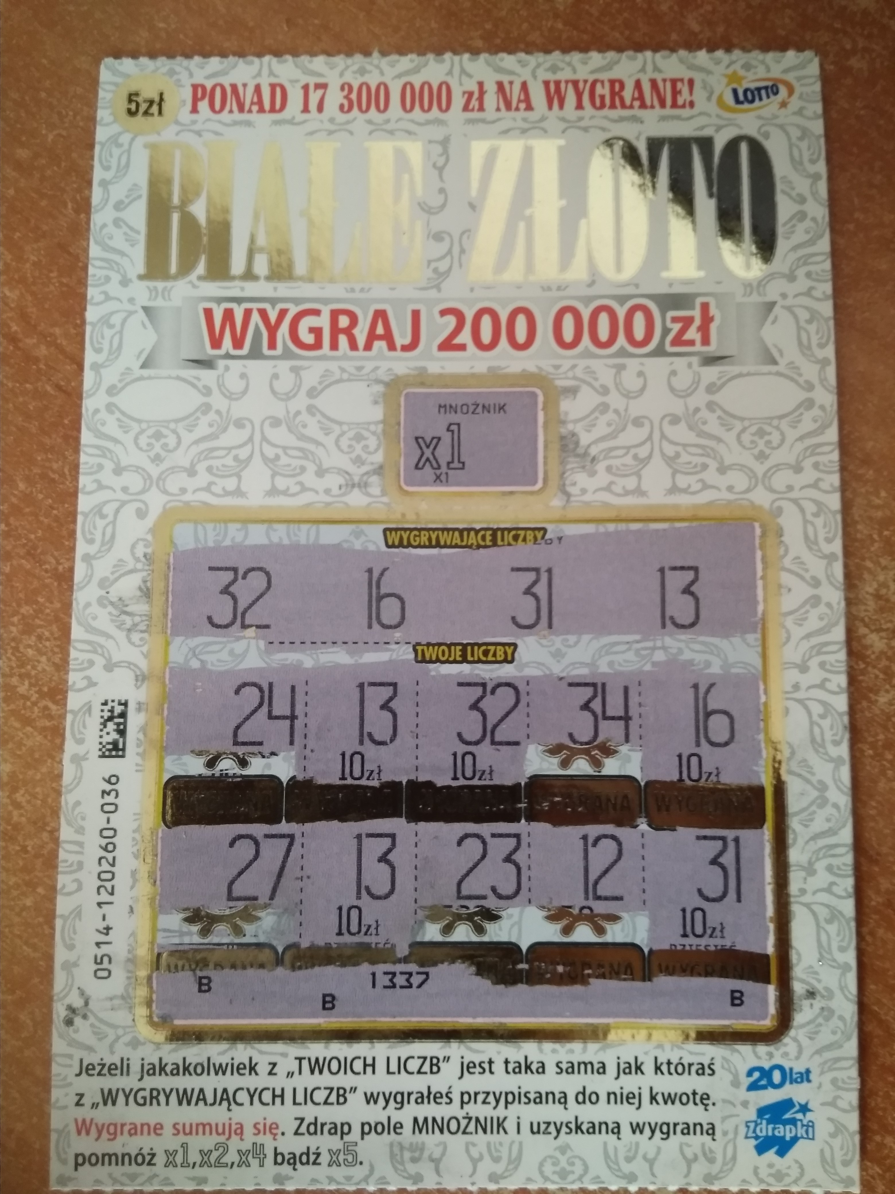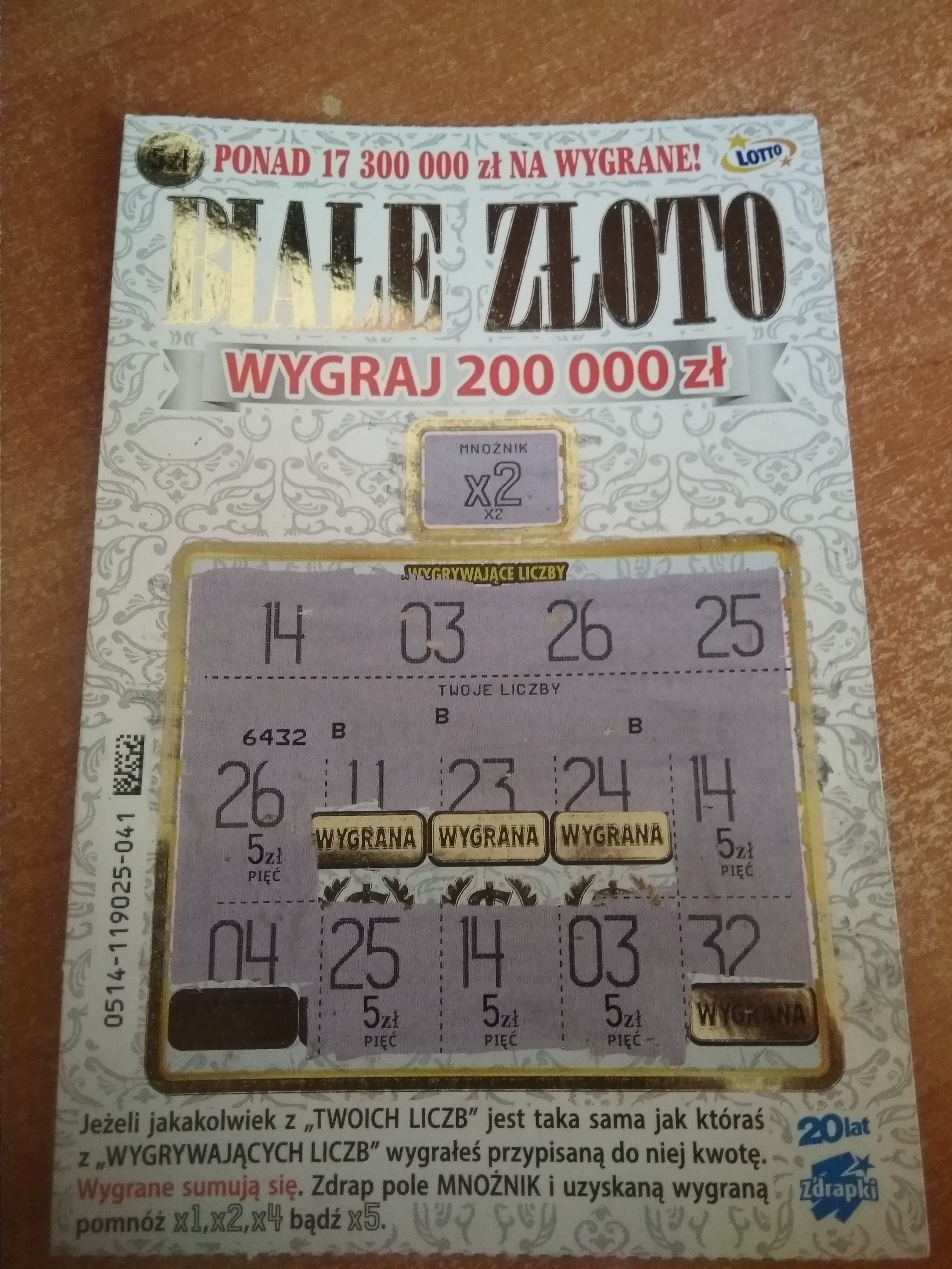 gratulacjemzielakzielakm pisze: ↑31 lip 2020, 16:59Taki ładny losowy rodzynek z mnoznikiem x5 . Moja najwyższa wygrana w tej zdrapce 200 złotychA najśmieszniejsze, że kupiona 1 sztuka.