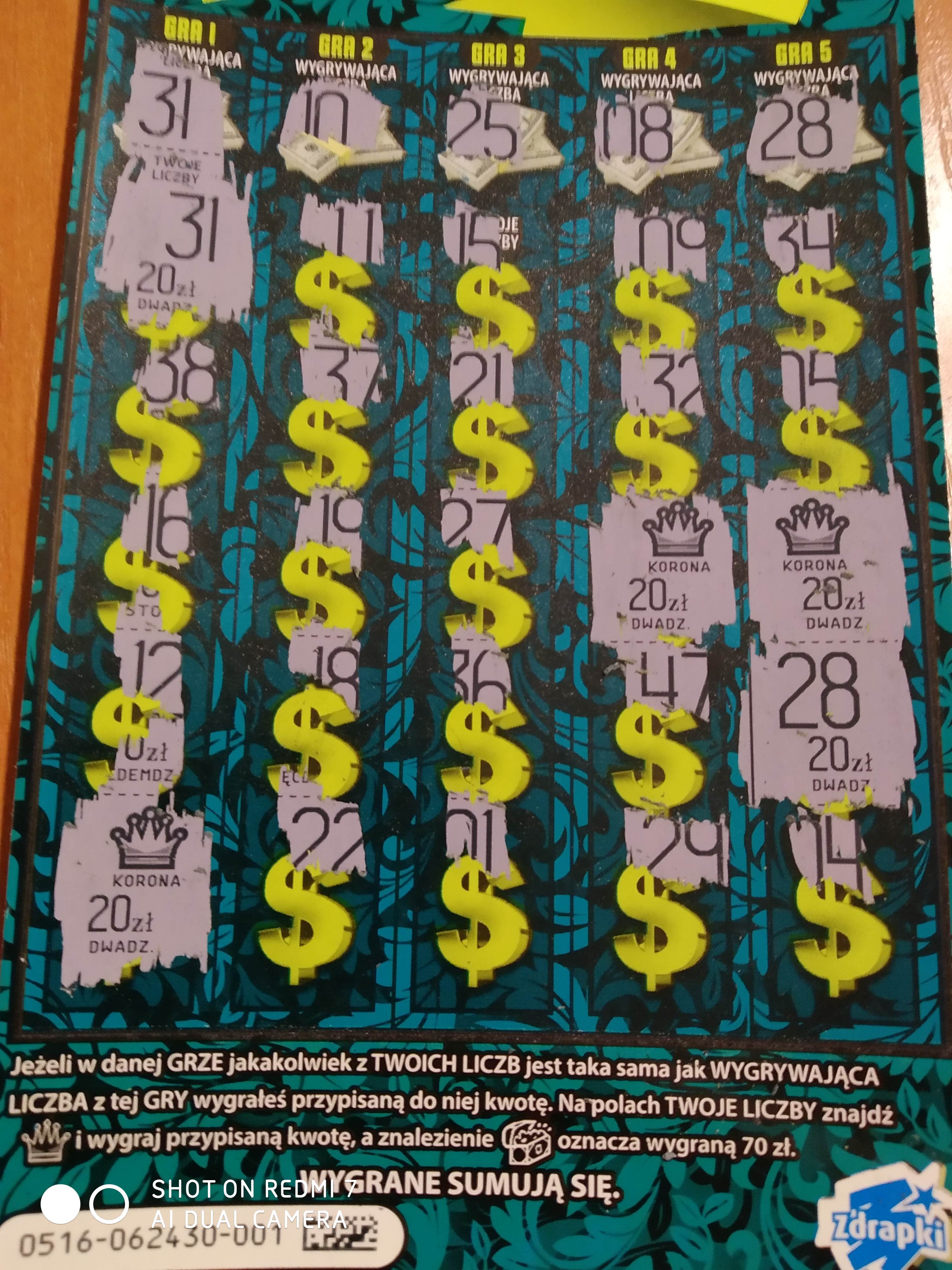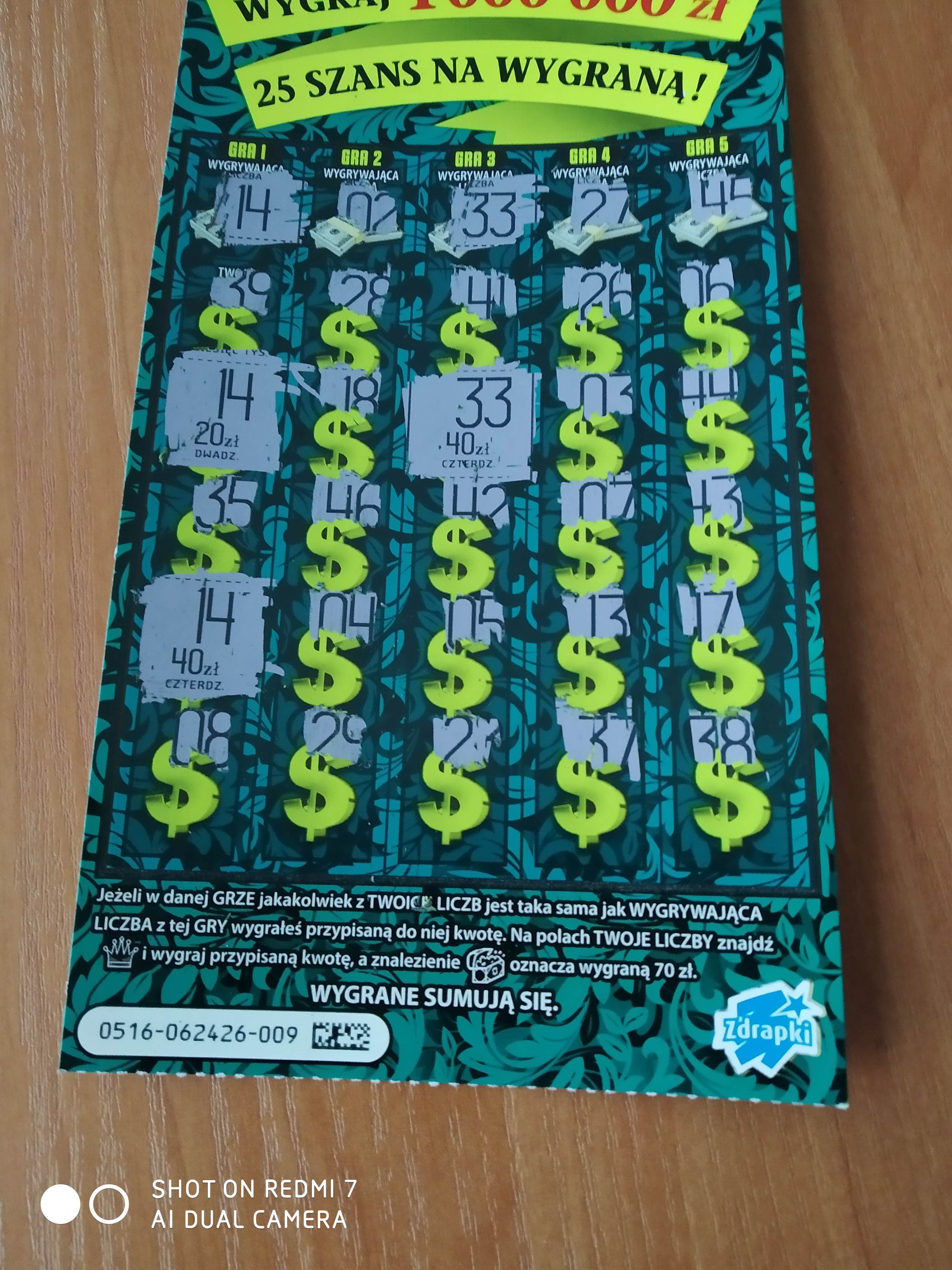 Albo głównej nie będzie w dniu premiery zdrapki bo będzie leżała na magazynie i dopiero po kilku miesiącach pójdzie w obiegKamila pisze: ↑09 sty 2020, 7:03Bez urazy ale raczej mało kogo obchodzi to skąd ktoś bierze zdrapki wcześniej. Rozchodzi się o to że każdy chce wygrać po to się gra. A tak istnieje możliwość że głównej już niebędzie w dniu rozpoczęcia sprzedaży bo ktoś kupił prędzej i wygrał. I tylko tyle w temacie. Nikt błotem tu raczej nikogo nieobrzuca.Nutaharion pisze: ↑08 sty 2020, 21:36Temat ten nie służy do wylewania smutków dotyczących tego "a skąd on wziął tę zdrapkę!? Zgłaszam to do prokuratury!".