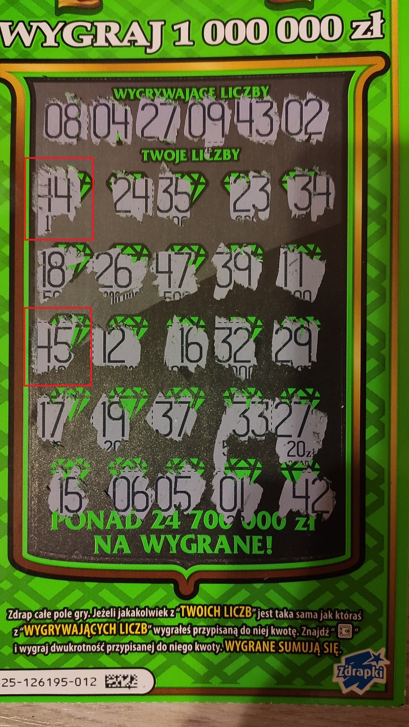A ja dodam zdjęcie poglądowe jak TS znowu zwalił wydruk zdrapki.