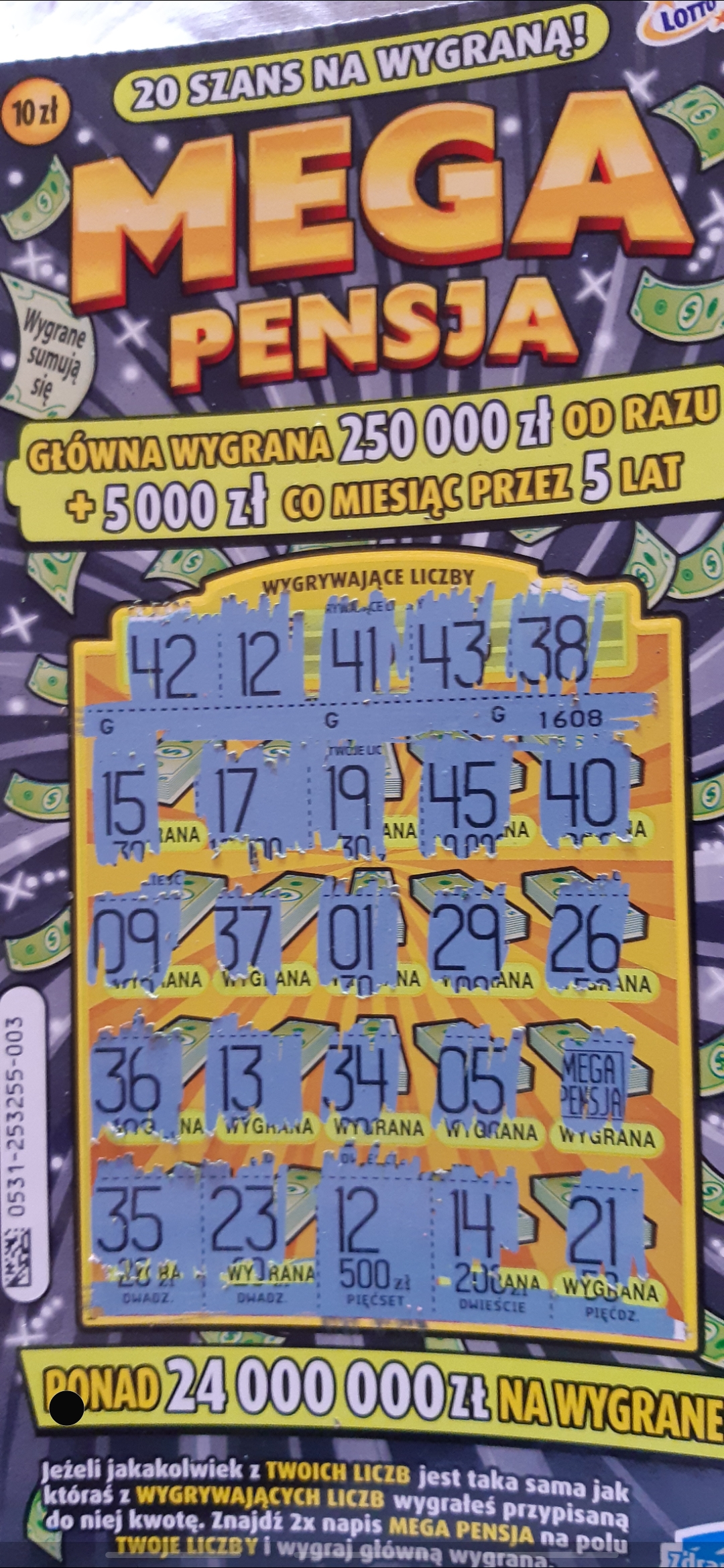 Opre się na przykladzie zdrapki MEGA PENSJA ( 0531-253255) zwracam uwage na nr paczki