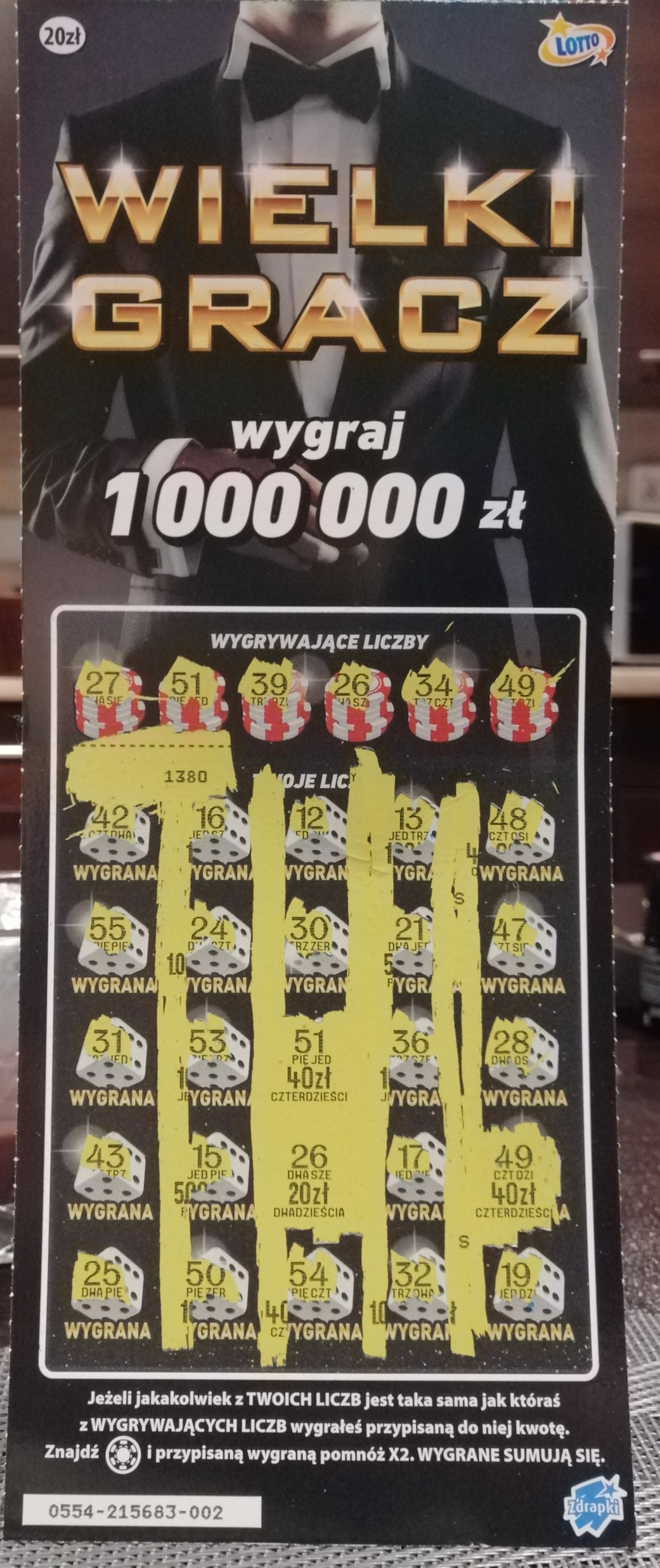 Paczka zdrapek za 20 zł i maksymalna wygrana 40 zł