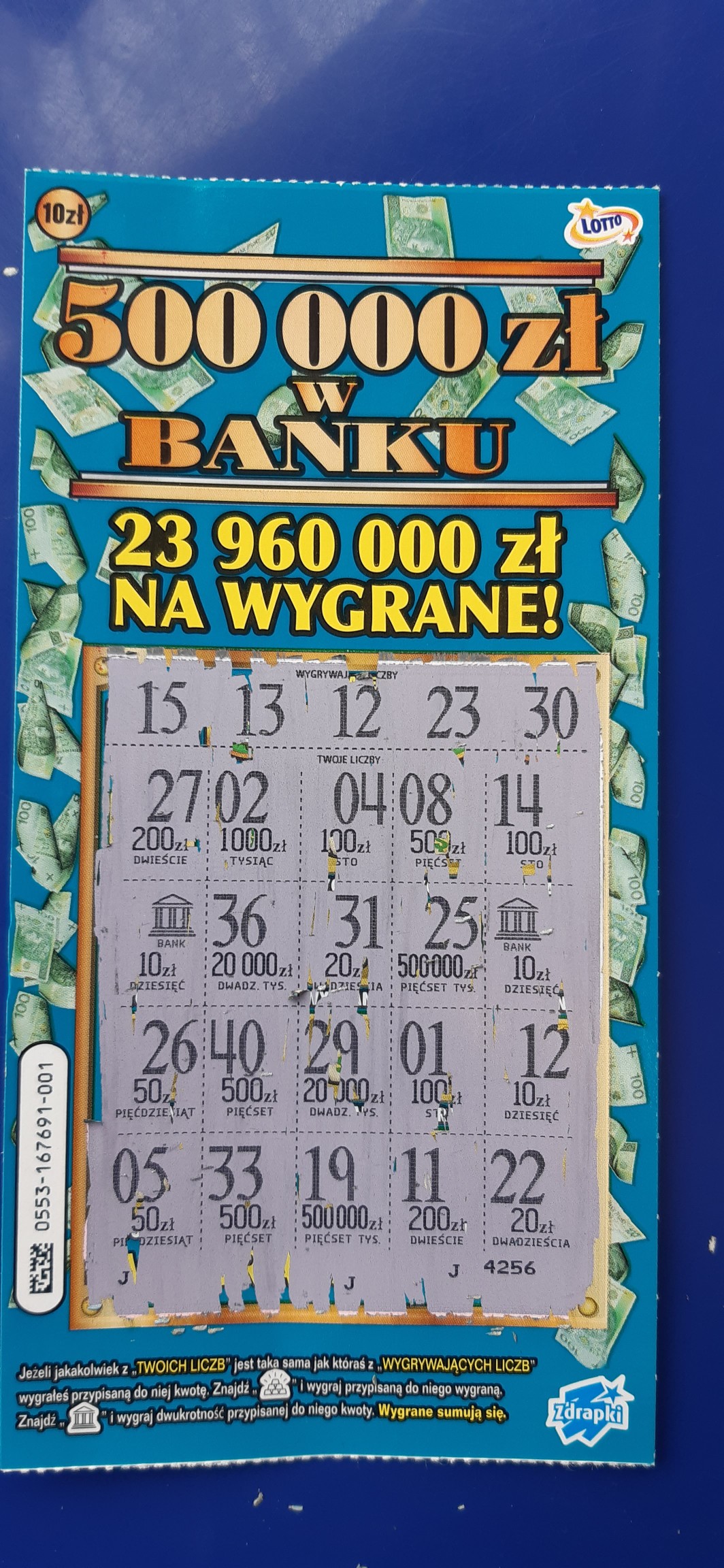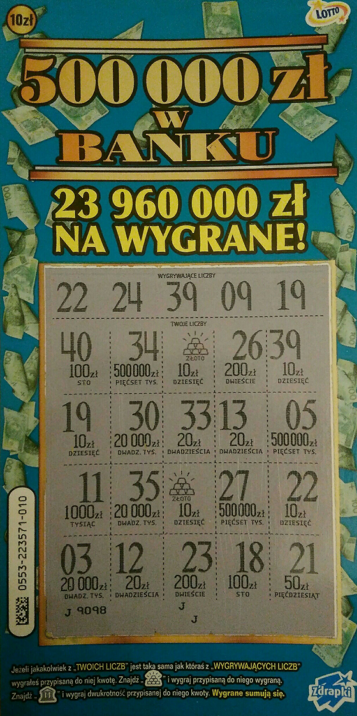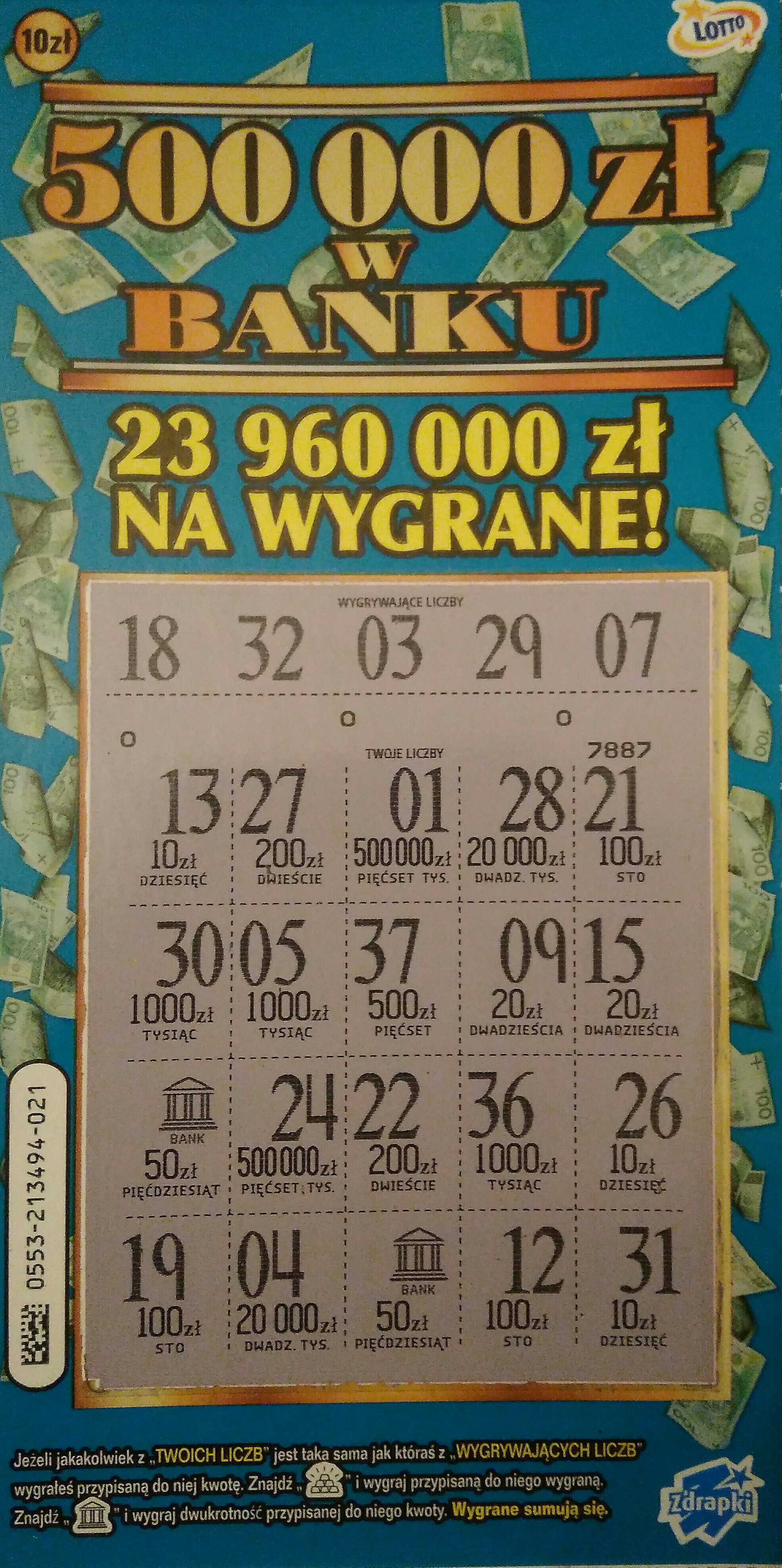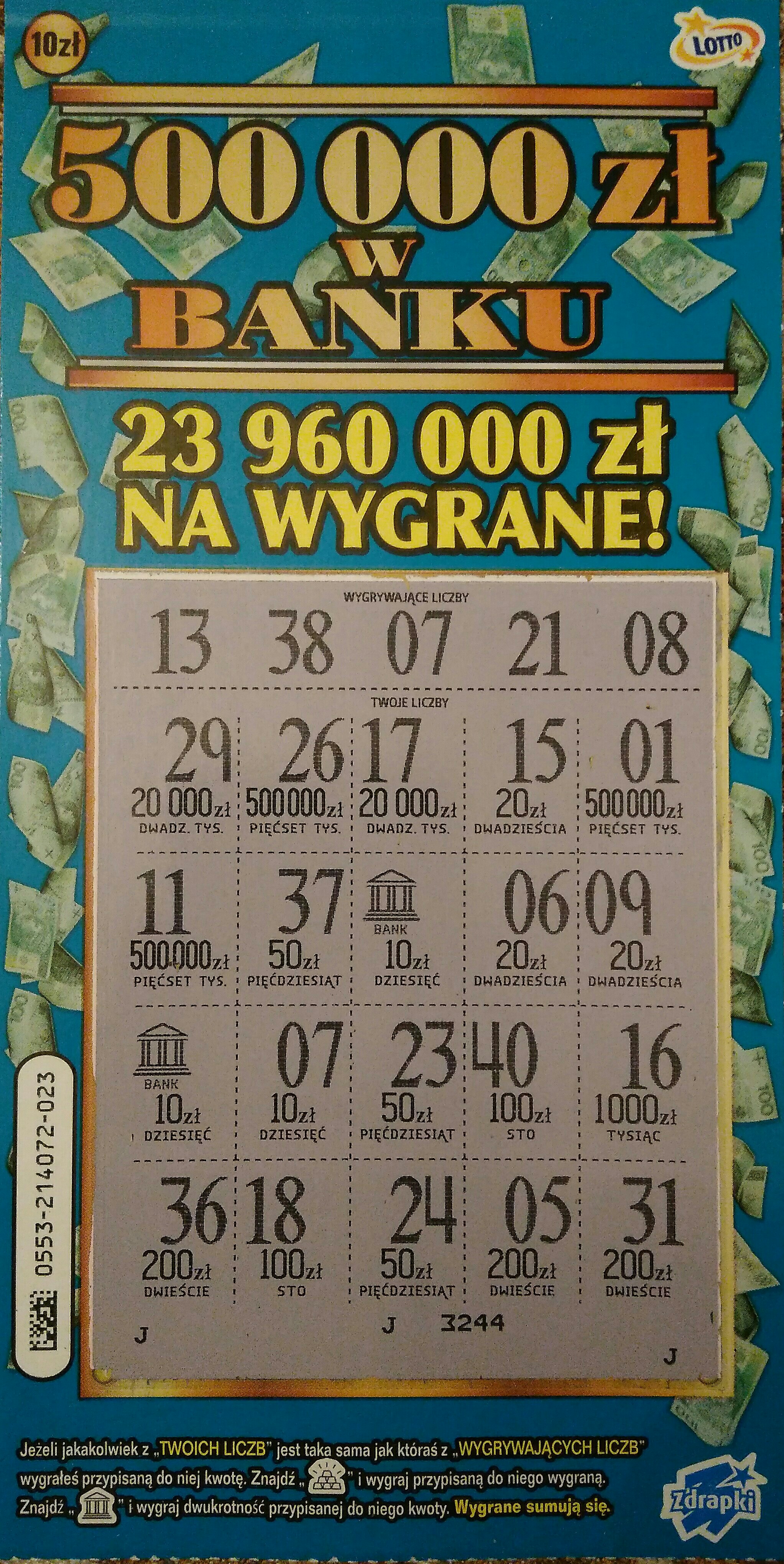 Numer 09, już w pierwszym miejscu był bank, myślałem, że będzie 500, niestety smaka narobili i odszedłem z dyszką razy dwa