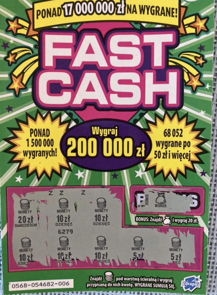 Mi ta zdrapka nawet zwrotu nie daje jak krzyżówka za 3 zł i bonus 7 od jakichś dwóch tygodni . Te 3 zdrapki chyba odpuszczę, w tej nawet nigdy worka nie miałem