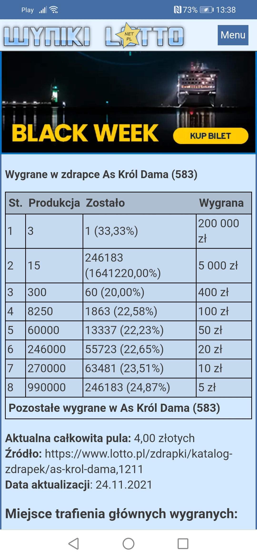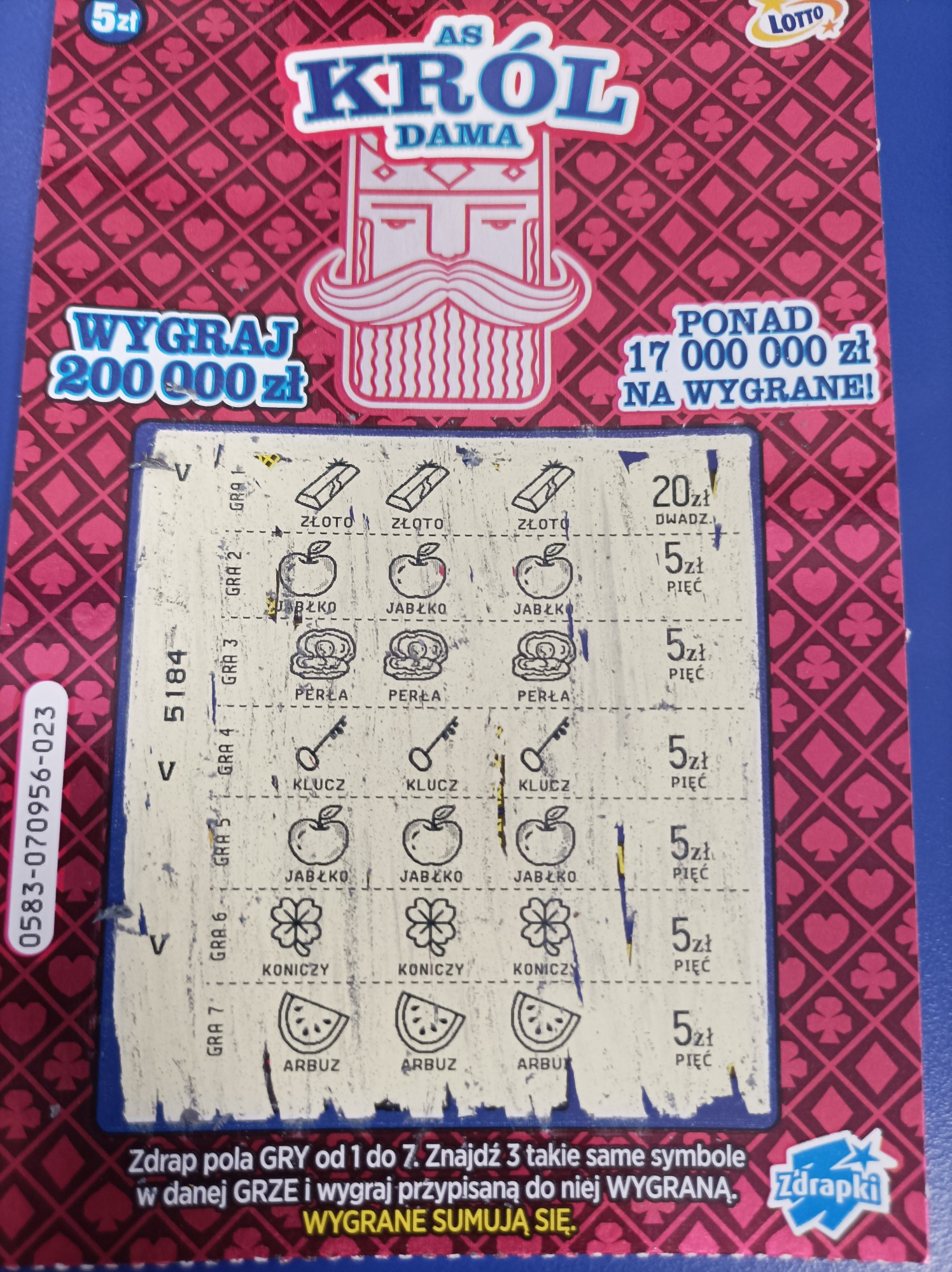 Zdrapka zwie się as król dama. W pierwszej transzy była główna na asie, w trzeciej transzy na damie. To aż się prosi by główna ze środkowej transzy była na królu. Póki co zdrapka nie jest w moim kręgu zainteresowań, ale jesli przyjdzie mi na nią polować to będę wołał tylko króle