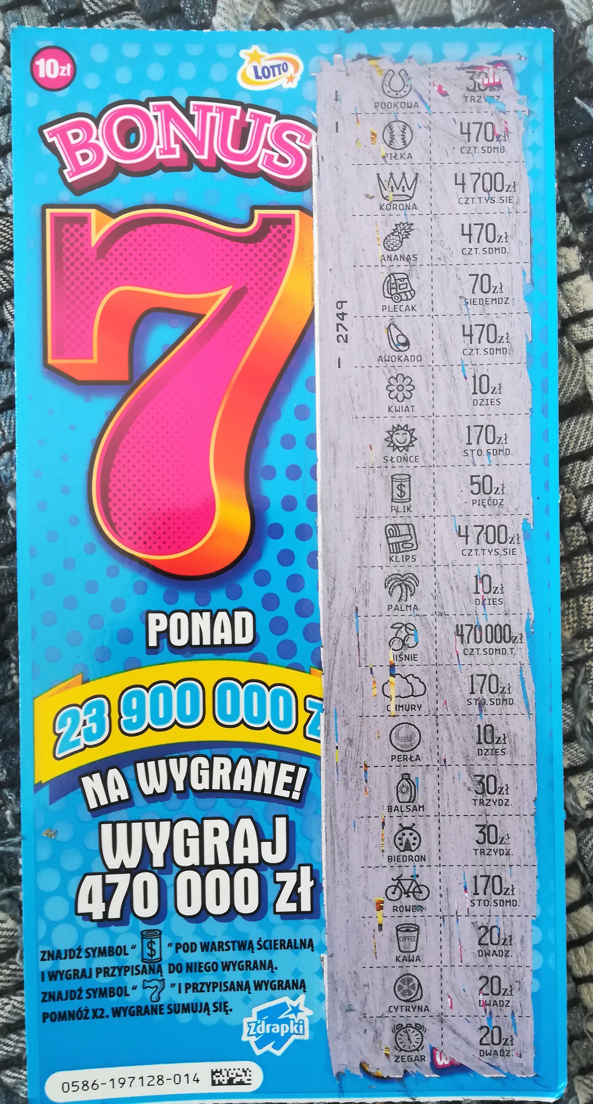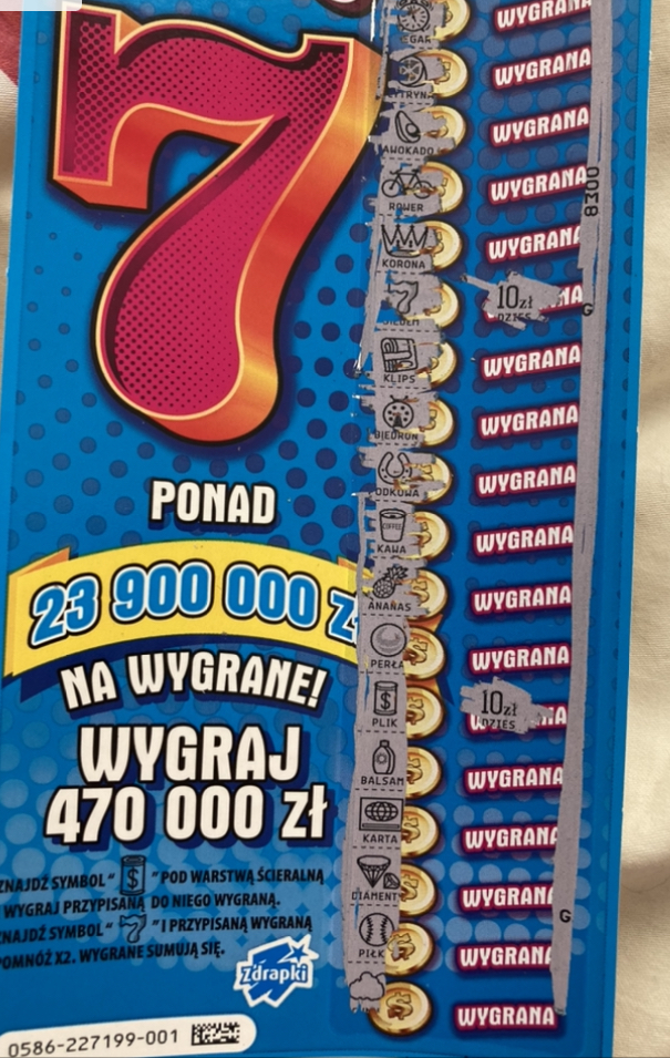Dzisiaj z rana na trzy zdrapki 20 zl i 50 zł w nr 15 i 24