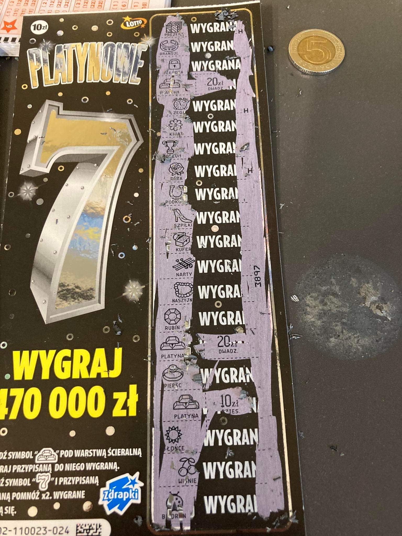 5szt platynki po kolei dało 60zl nr 1 10zl nr 2 pusto nr 3 20 zl nr 4 pusto i nr 5 30 zl