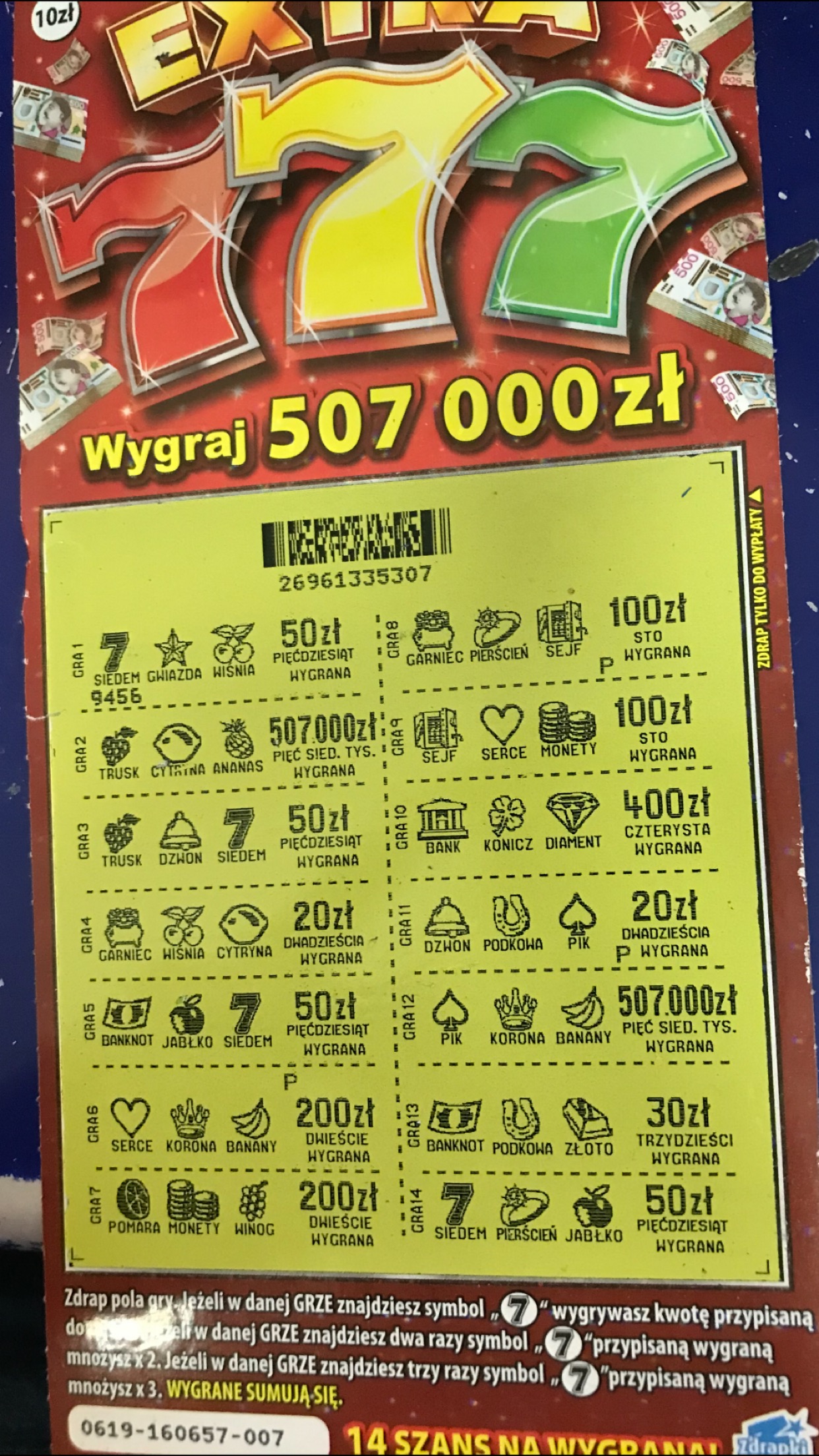 Znowu w moim numerze, ja nie mogę tysiaka nawet trafić. Na szczęście tej zdrapki też nie kupuje