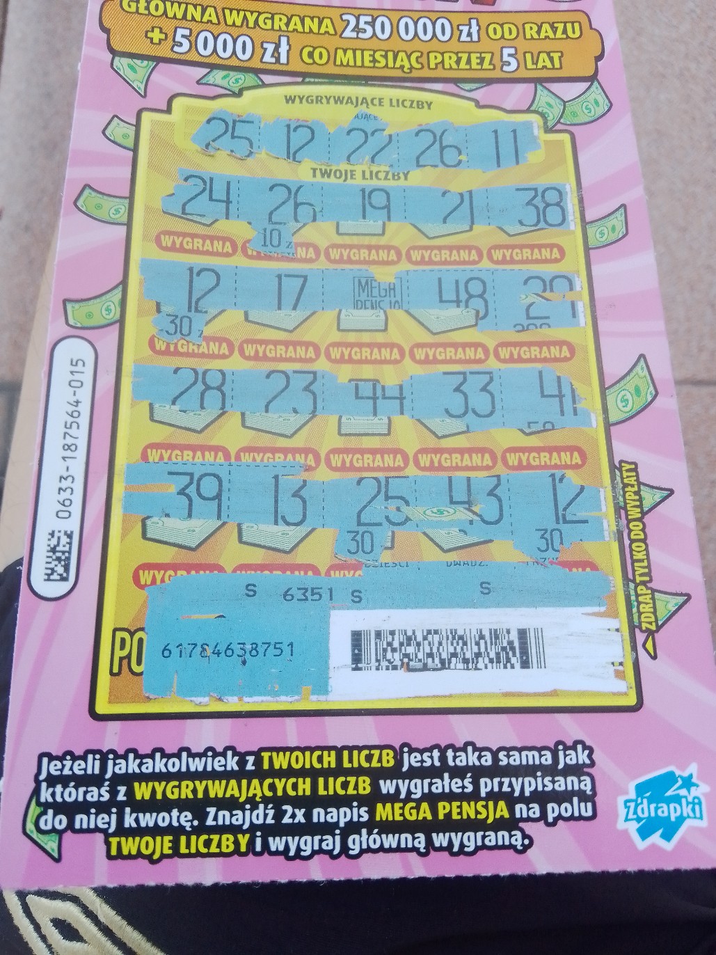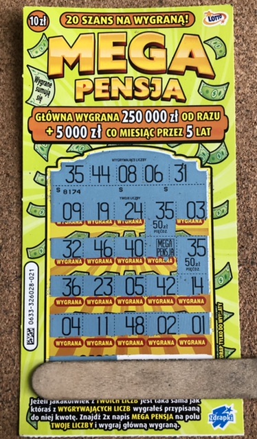 Ku zdziwieniu spotkałem dzisiaj wersję żółtą, wziąłem jedną i niestety pustak. U mnie można teraz spotkać wszystkie wersje kolorystyczne tej zdrapki, najczęściej jednak nieatrakcyjna już zielona