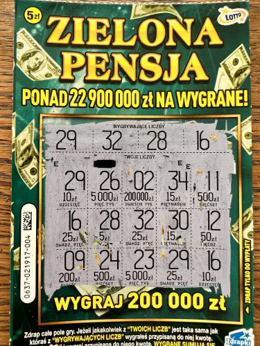 Chociaż zostały jeszcze 3 nagrody, to sporo jak na 13% pozostałego nakładu. A i zdrapka w przystępnej cenie. Za 30 zł ( czyli cenę Wielkiej Krzyżówki) można kupić 6 sztuk Zielonej Pensji.