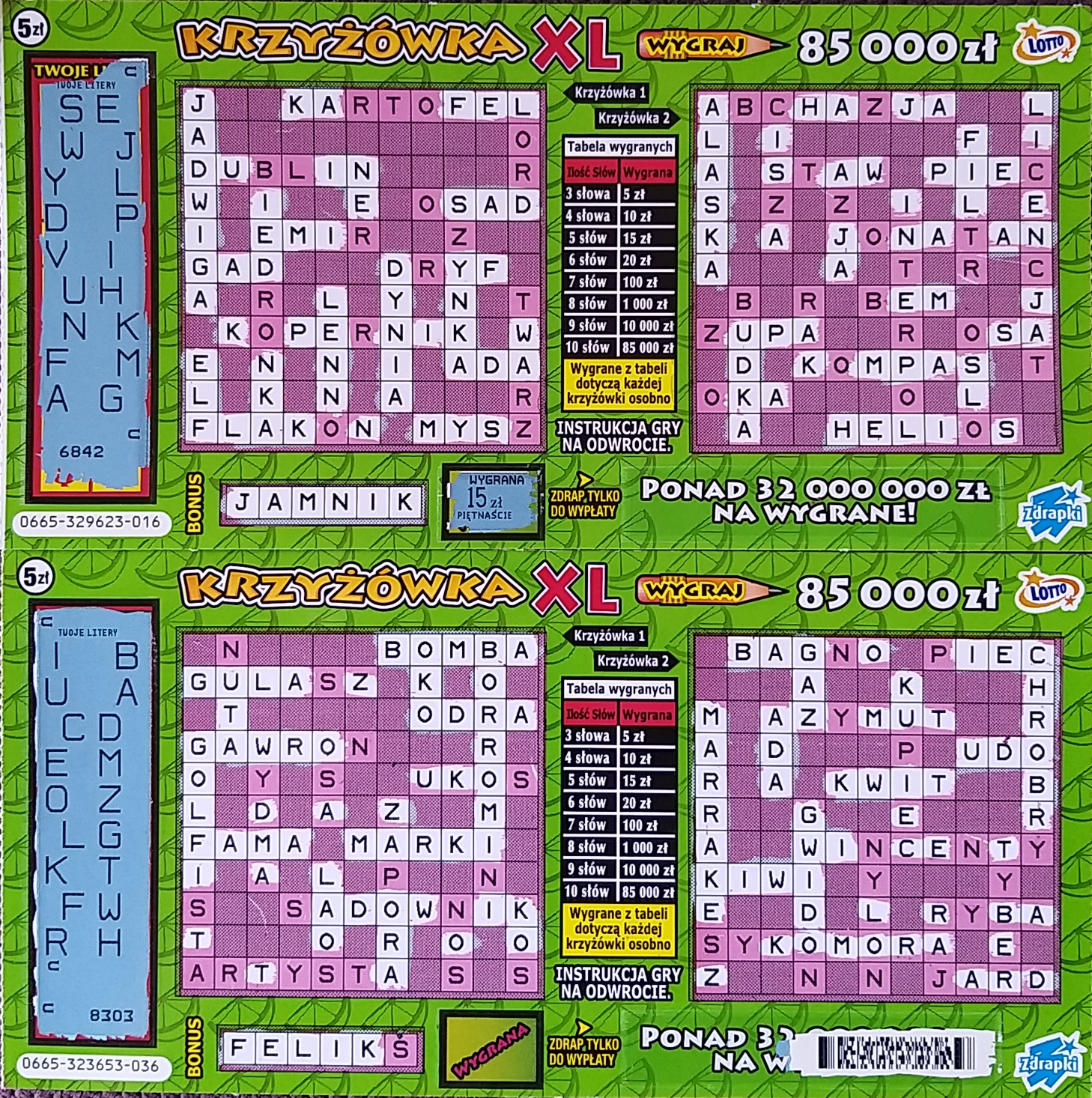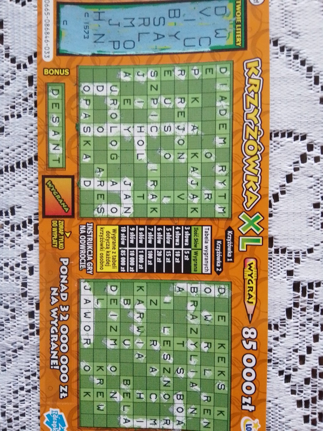 Wyjątkowo nie drapałem krzyżówki literka po literce tylko od razu szukałem całych słów, a to dlatego że bonus mi się nie podobał i myślałem że los będzie pusty a tu taki zwrot akcji!![]()