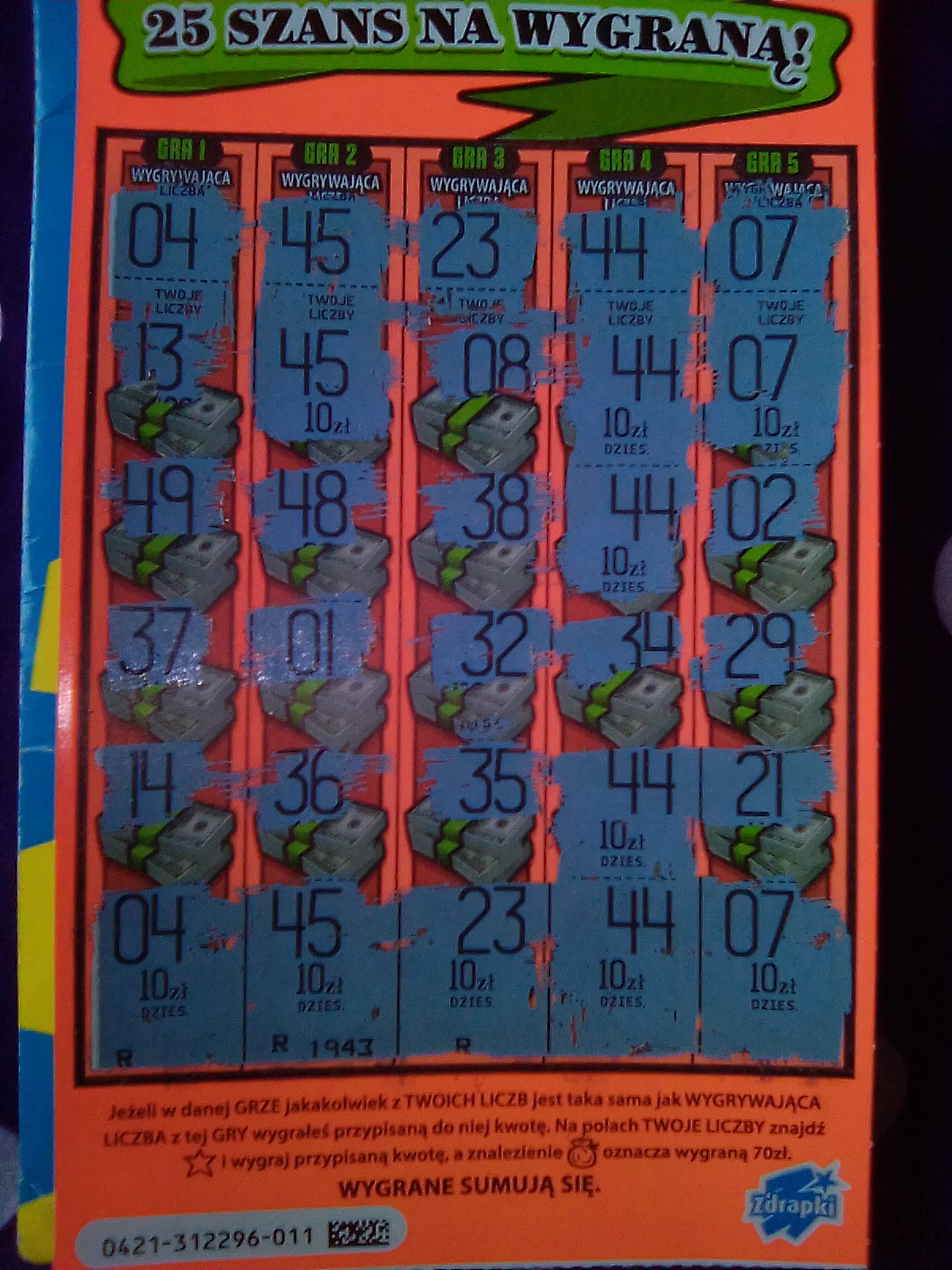 Pytanie tylko do Ciebie Beata po co Ci to wiedzieć skoro każdy los w kolorze pomarańczowym może skrywać główną![]()