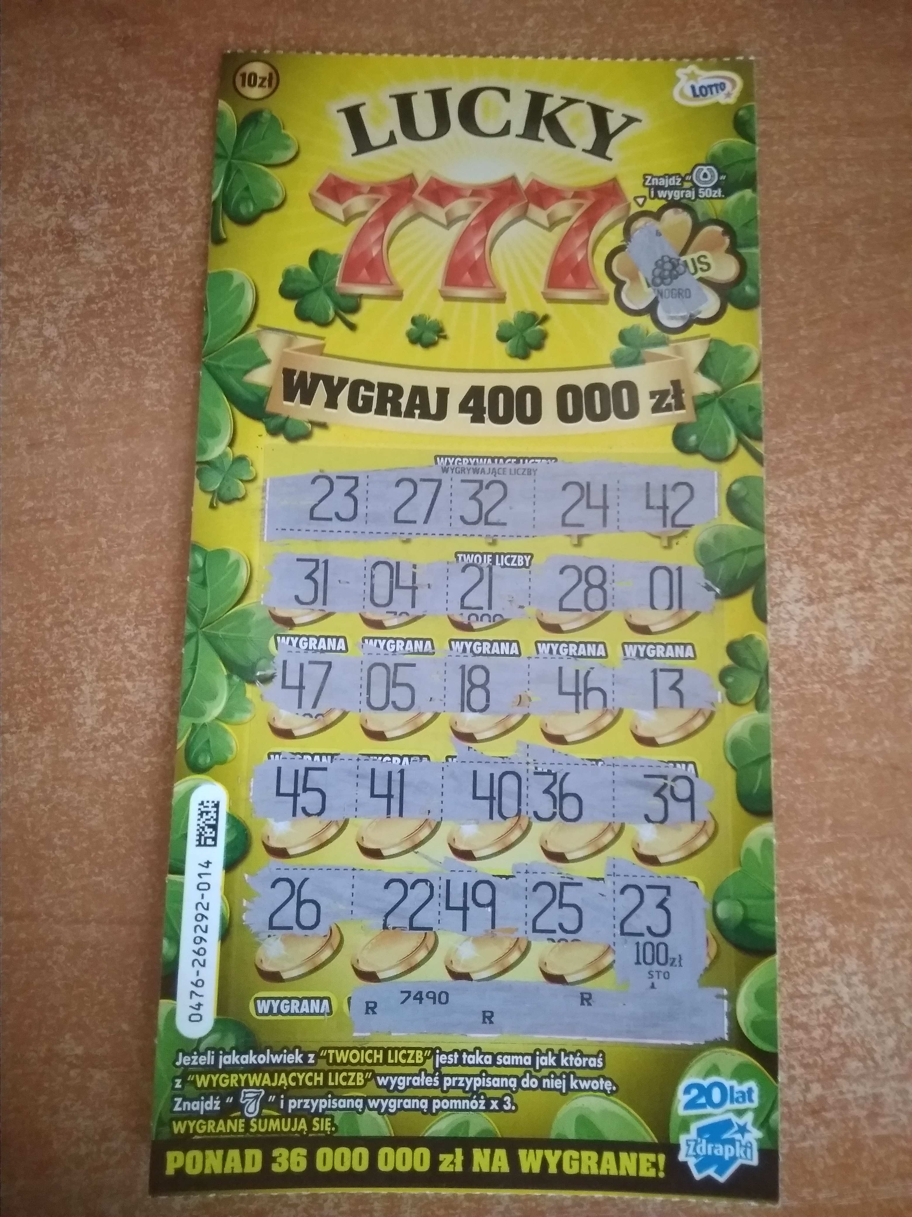 W tej zdrapce często mi się trafia, że wygrana jest na ostatnim polu