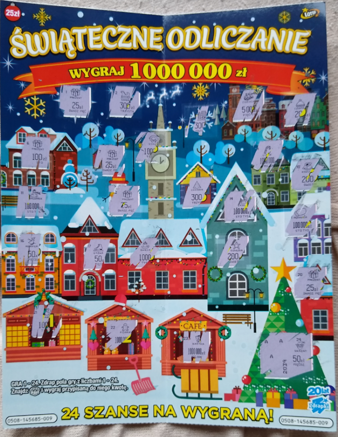 Pula na wygrane przez ostatnie 2 miesiące spadła z 15 milionów do aktualnych 12 i pewnie teraz będzie schodzić bardzo powoli. Na następne święta 2021 jeszcze zdrapka pewnie będzie w sprzedaży.