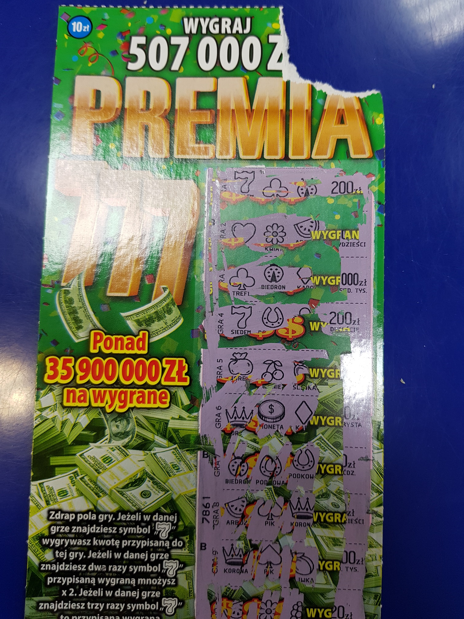 Zdjęcie zdrapki zrobiłem po tym jak Pani w kolekturze ją przedarła:)