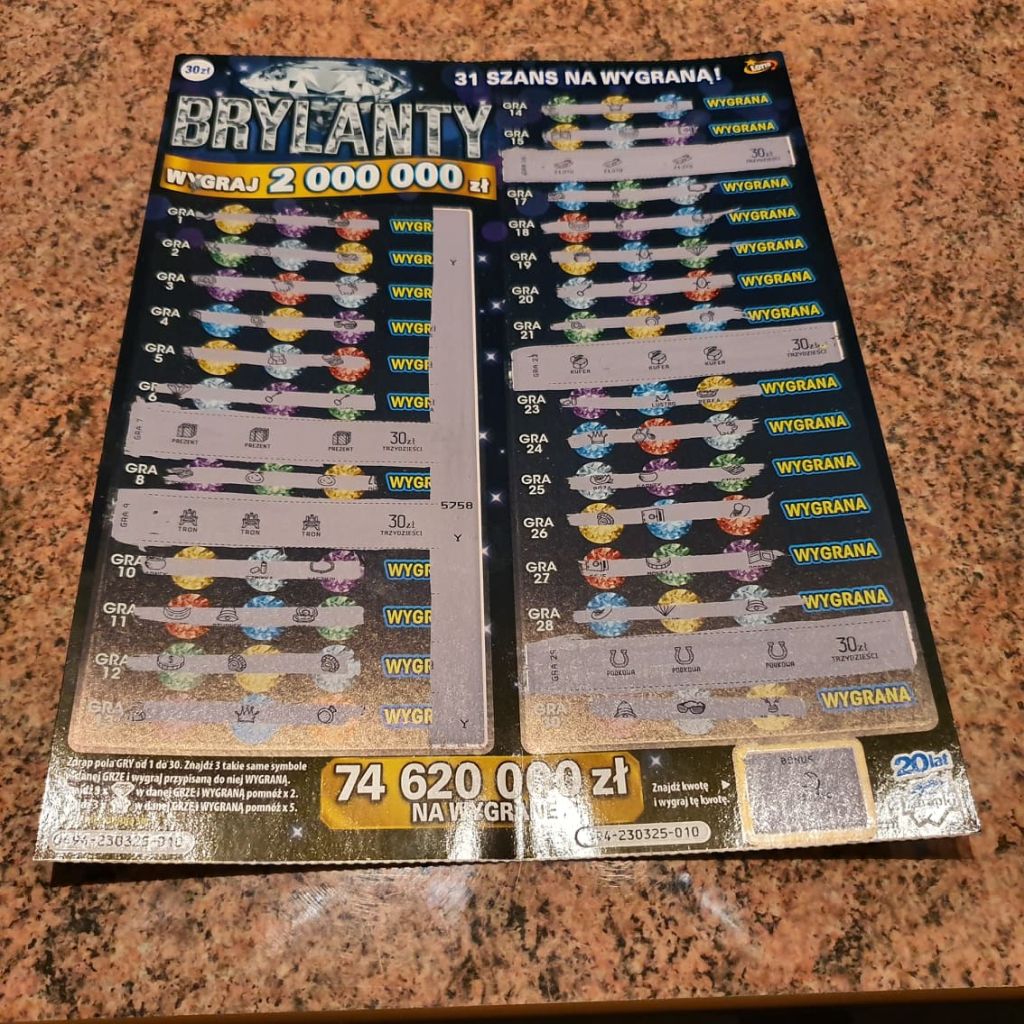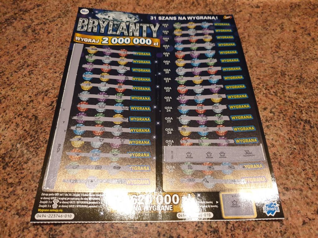 Przedwczoraj kupiłem jedna brylantową. W polu z bonusem trafiłem 30zl. Wymieniłem na kolejna i jedna dodatkową.