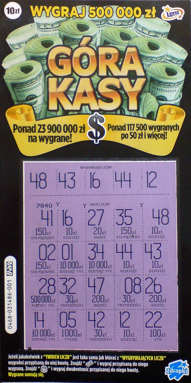 Ja na kupione 25sztk jeden raz zwrot i jeden raz 50zl nie dobrze ze się na tą zdrapke w nastawiam słaby sort na początek rzucili.