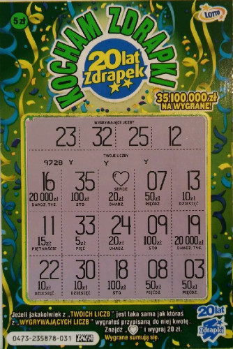 Przy wypłacie wygranej kupiłam dwie kolejne zdrapki, jedna pusta 015 a w 031 znowu wpadło 20 zł