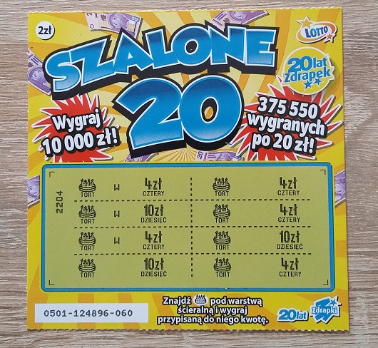 Dziś również wyjątkowo opłacalne zdrapki za 2zl udalo mi się wyłowić z pokaźnej kupki. W jednej dycha, w drugiej 20