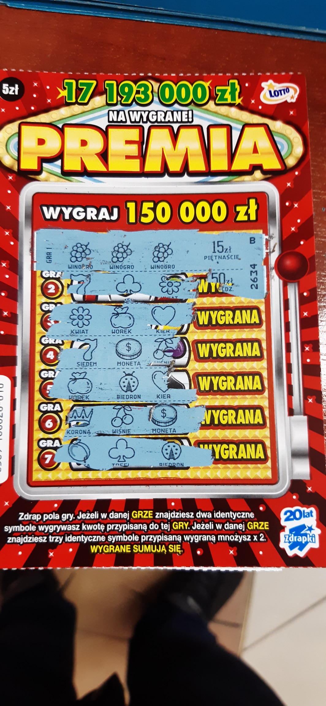 Dla mnie to mega pechowa zdrapka. Jeszcze nawet 5 zł w nią nie wydrapałam, a jakieś 8 sztuk już kupiłam. Może jeszcze się odczaruje.