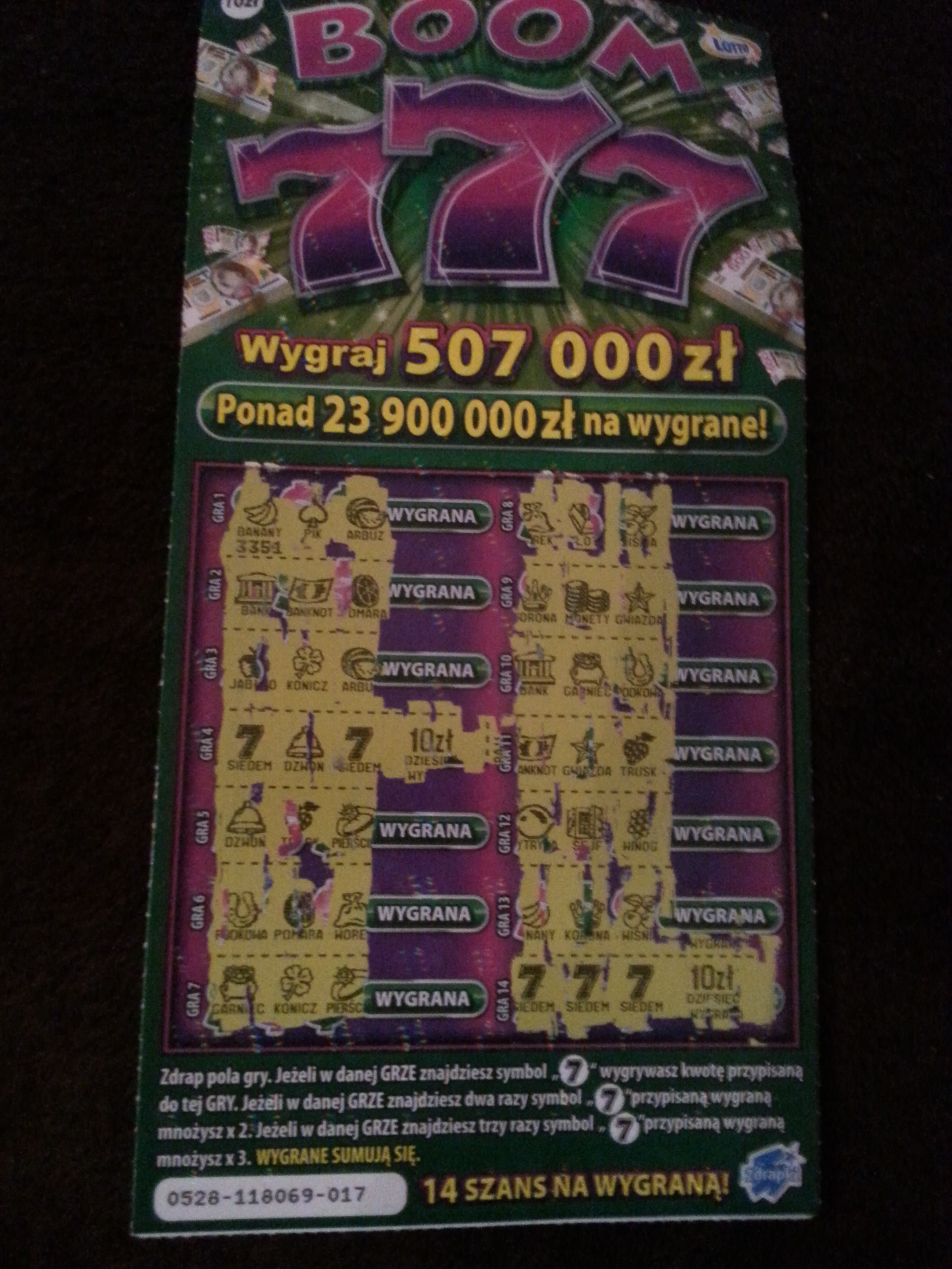 druga 100ka w boom777 i druga w numerze zdrapki 007