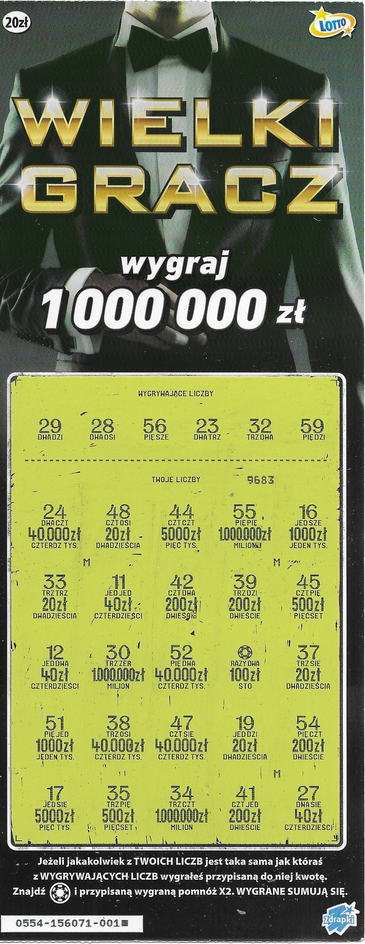 Moim zdaniem wszystkie zdrapki za 20zł można wrzucić do jednego worka. Bardzo podobne tabele, dużo drobnicy do 100zł, a ciekawszych nagród po 200zł a szczególnie po 500 i 1000zł zawsze bardzo mało. Skoro różnice między nimi znikome to najlepiej trzymać się tych gdzie faktycznie jest jeszcze 1mln do wydrapania. Wielki gracz/klub milionerów mają trochę większą liczbę 200-tek, oczywiście kosztem 500 i 1000, żeby ktoś nie miał złudzeń.