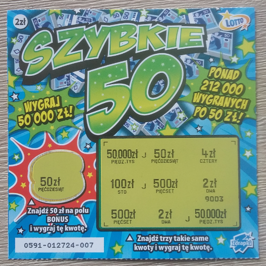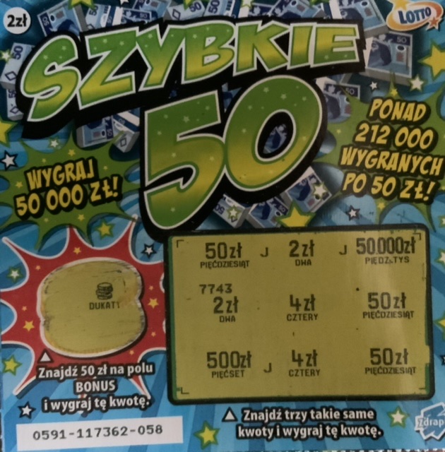Ładnie ładnie ! Ile sztuk bierzecie zwykle, drapiący szybkie 50 ? Mi się jedyny raz udało wydrapać w tym 50 zł chyba jakoś w 2019 roku - wówczas wziąłem 5 sztuk. Ogólnie prawie zawsze mam puste, nawet 4 zł mi się za wiele razy nie zdarzyło - toteż mam jakąś głęboką niechęć do tej zdrapy. Może wezmę jedną jutro na przełamanie przy okazji
