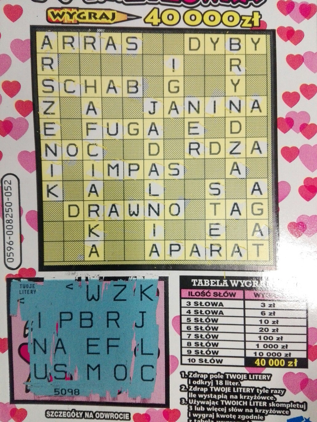 Trzeci raz przy kupnie dwóch szt trafiłem ,2*20, a pierwszy raz,że są pod rząd. A to moja podstawowa zdrapka.