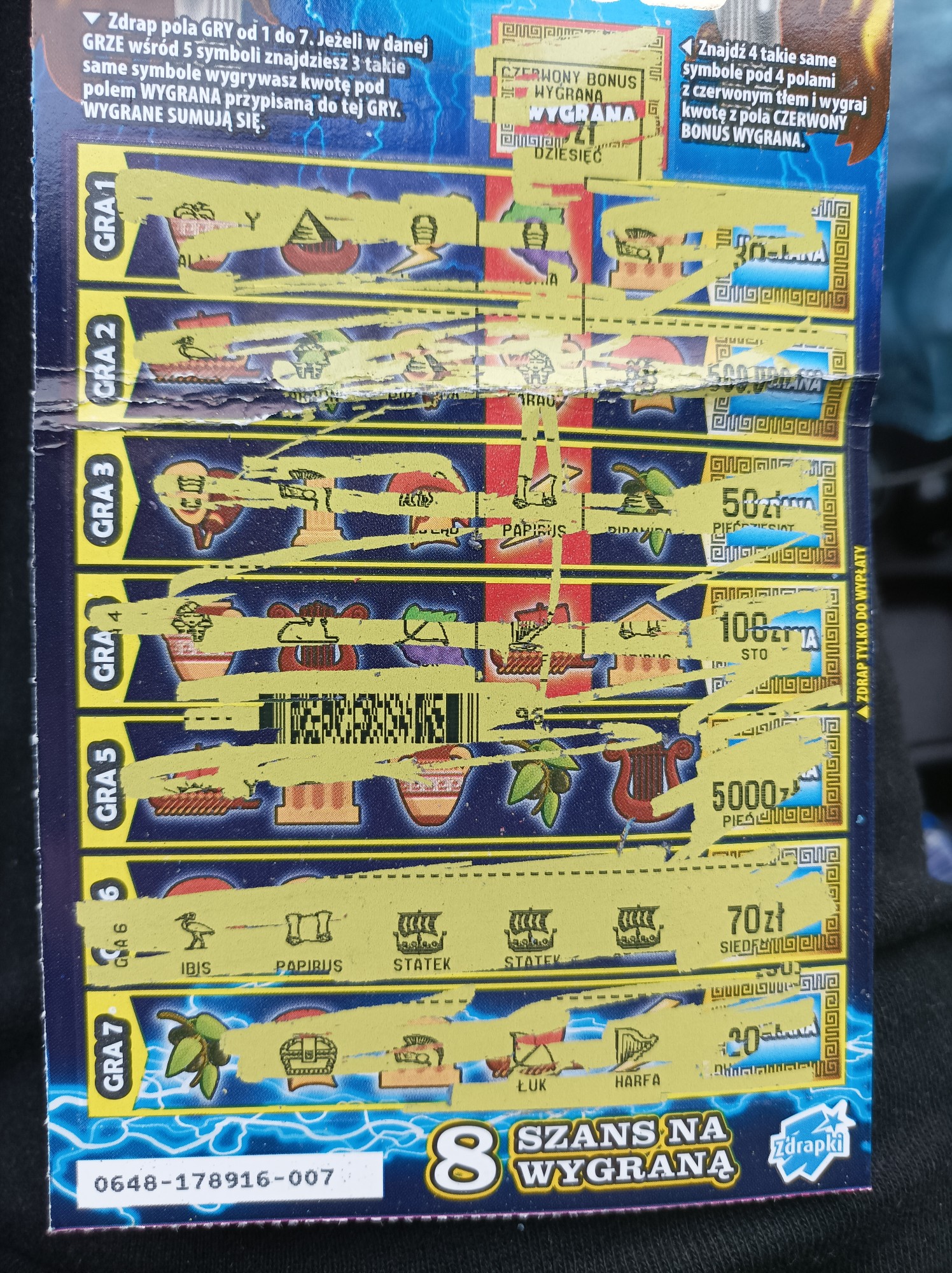 A ja raczej na dłuższy czas podziękowałem tej zdrapce. Co z tego, że formuła fajna jak na kilkanaście sztuk wpadł raz zwrot? Bardzo pechowa dla mnie.