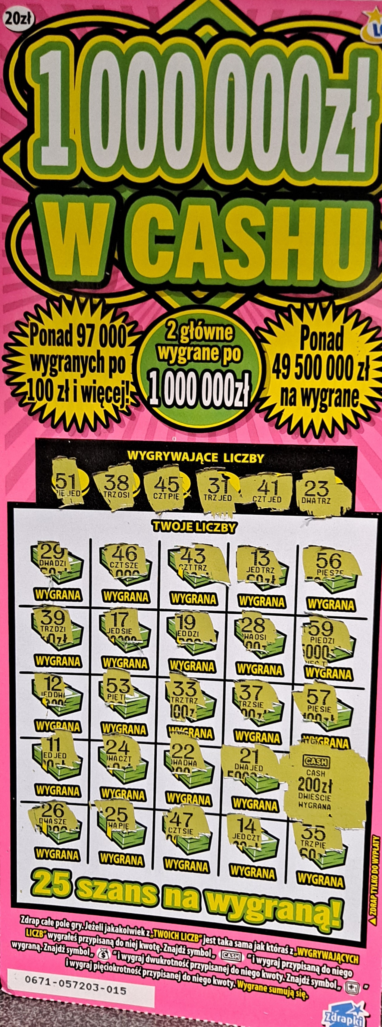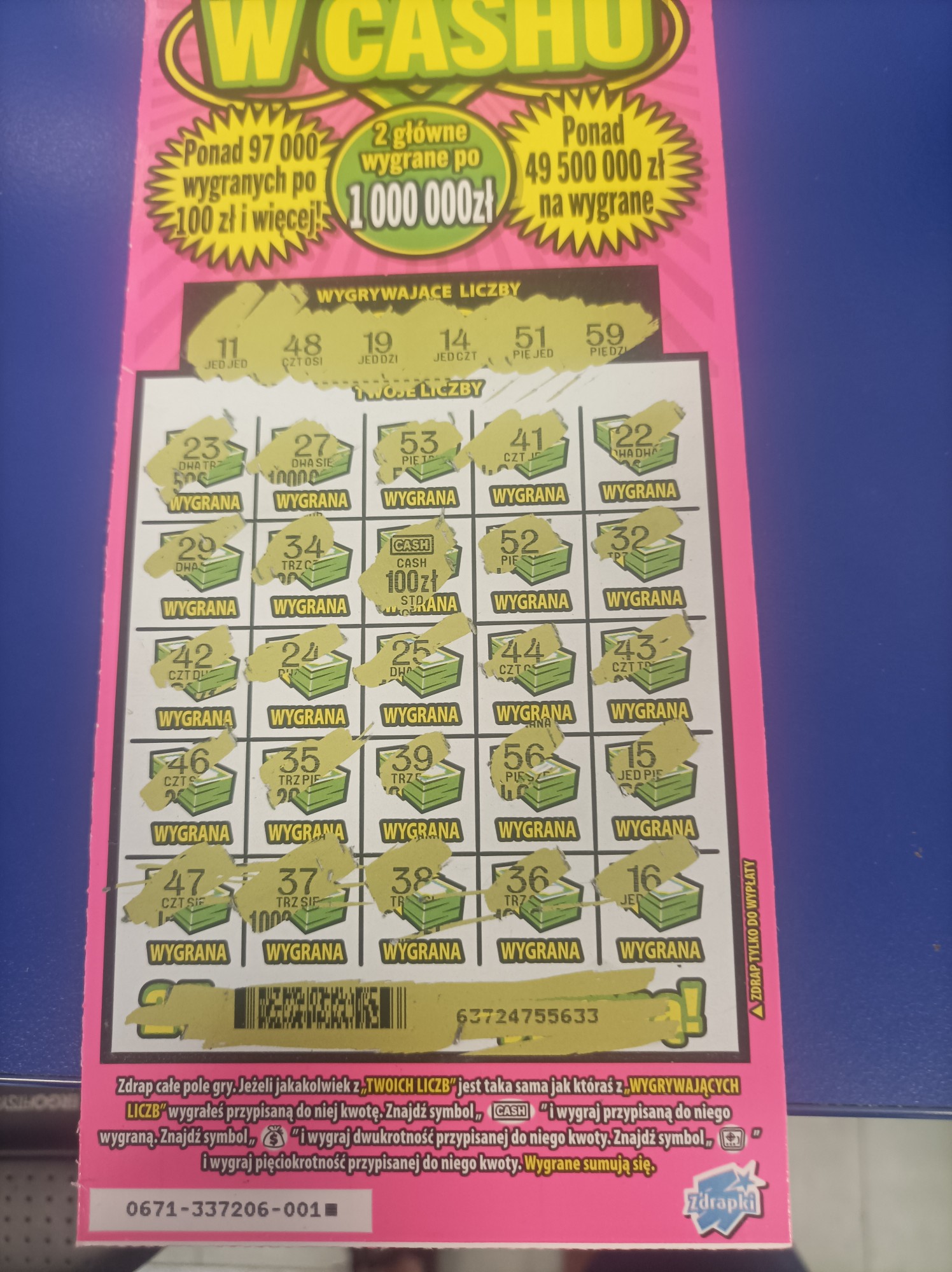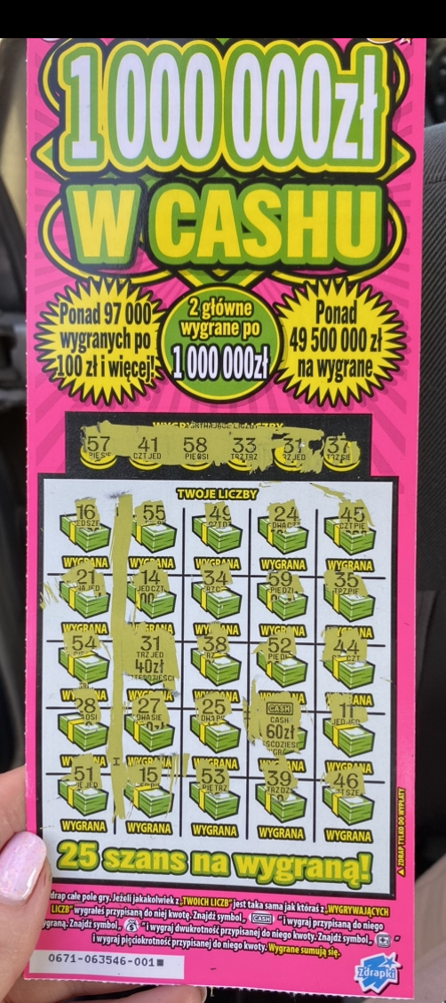 Jakiś czas temu jedna sztuka ze szczęśliwego zdrapkomatu i 40 zł w nr 007