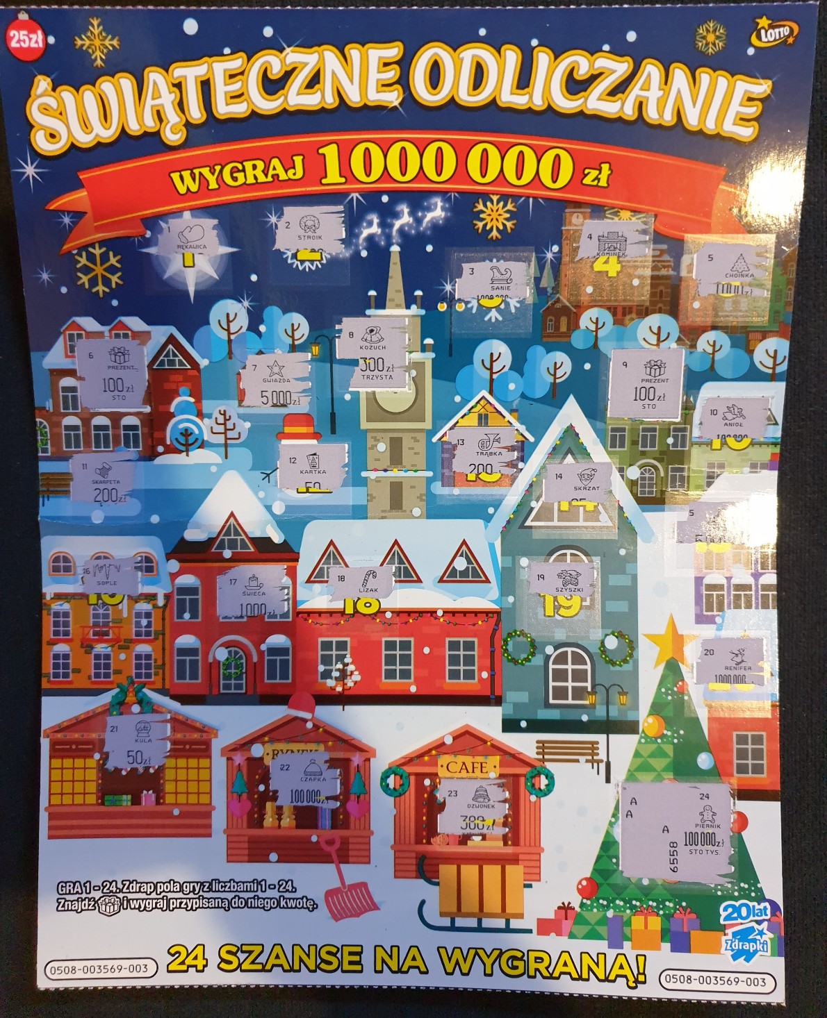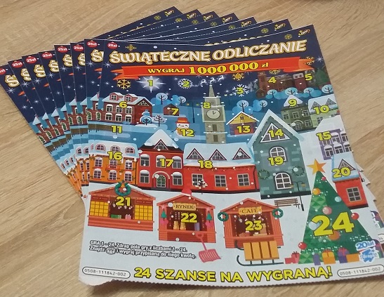 W każdym zdrapanym okienku mamy jeszcze raz powtórzony numerek dnia. Jesli nr 1-23 są po lewej stronie okienka to symbol na polu 24 będzie po prawej stronie okienka. A jesli nr 1-23 są po prawej stronie okienka to symbol na polu 24 jest po lewej