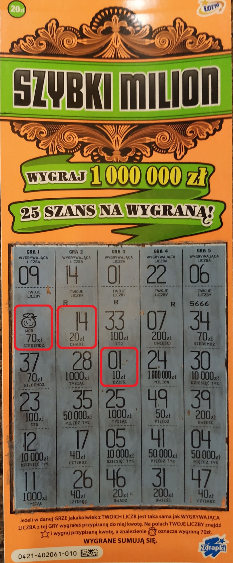 Ogólnie ostatnio zdradziłem "Szybkiego Miliona" na rzecz między innymi "Góry Kasy", ale ta zdrada wiele mnie kosztowała, maksymalna wygrana 30 zł ostudziła dalsze zapędy. Patrzyłem na "Ekstra Pensję" w okolicy, ale też bez jakichś rezultatów z fajerwerkami. Bardzo średnia sytuacja na drapanie czegoś innego