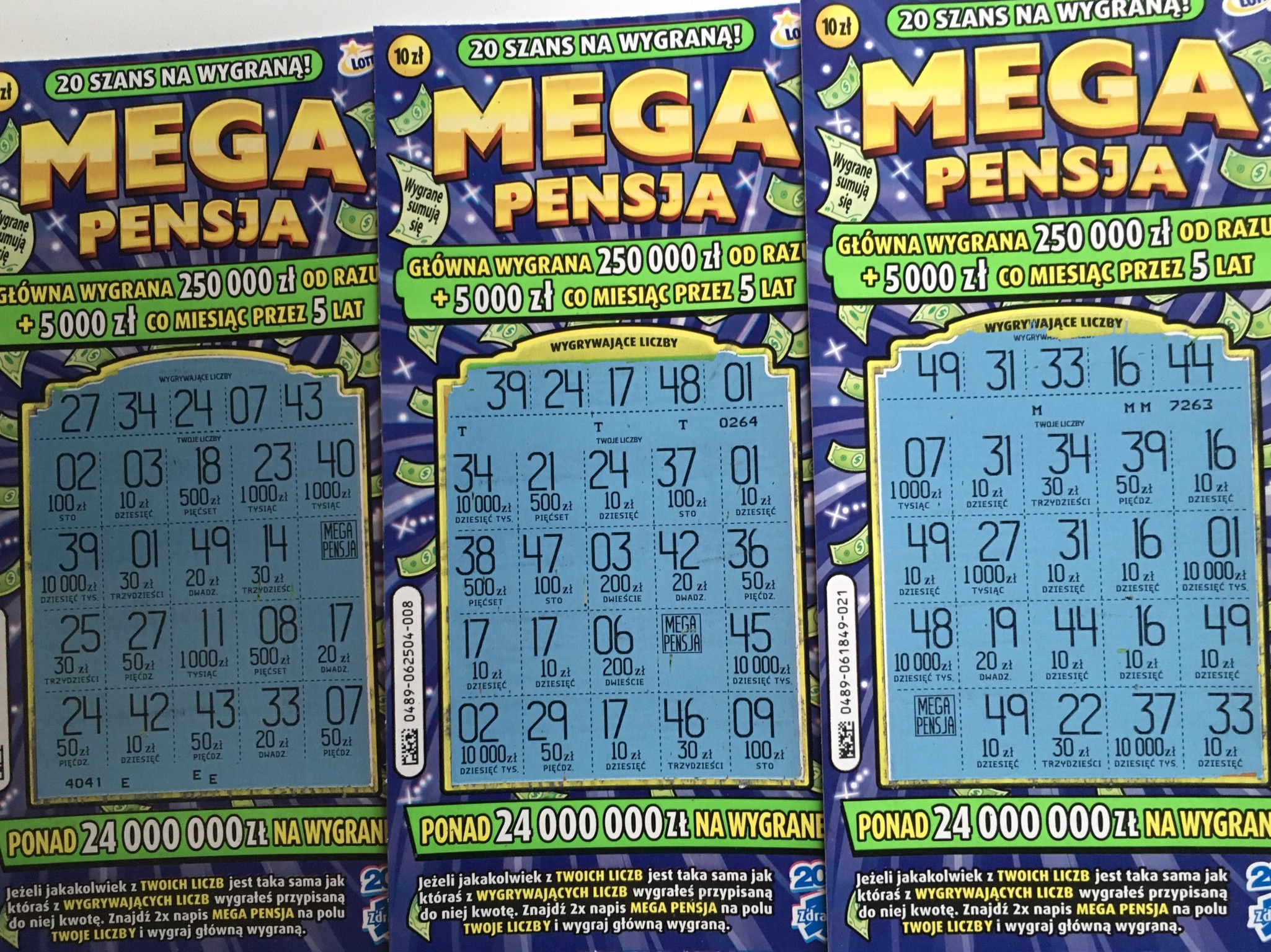 W mojej kolekturze były 10 zdrapek bo jak Pani powiedziała od jakiej innej kolektory dostali więc musiałem wziąść zobaczymy co to będzie.