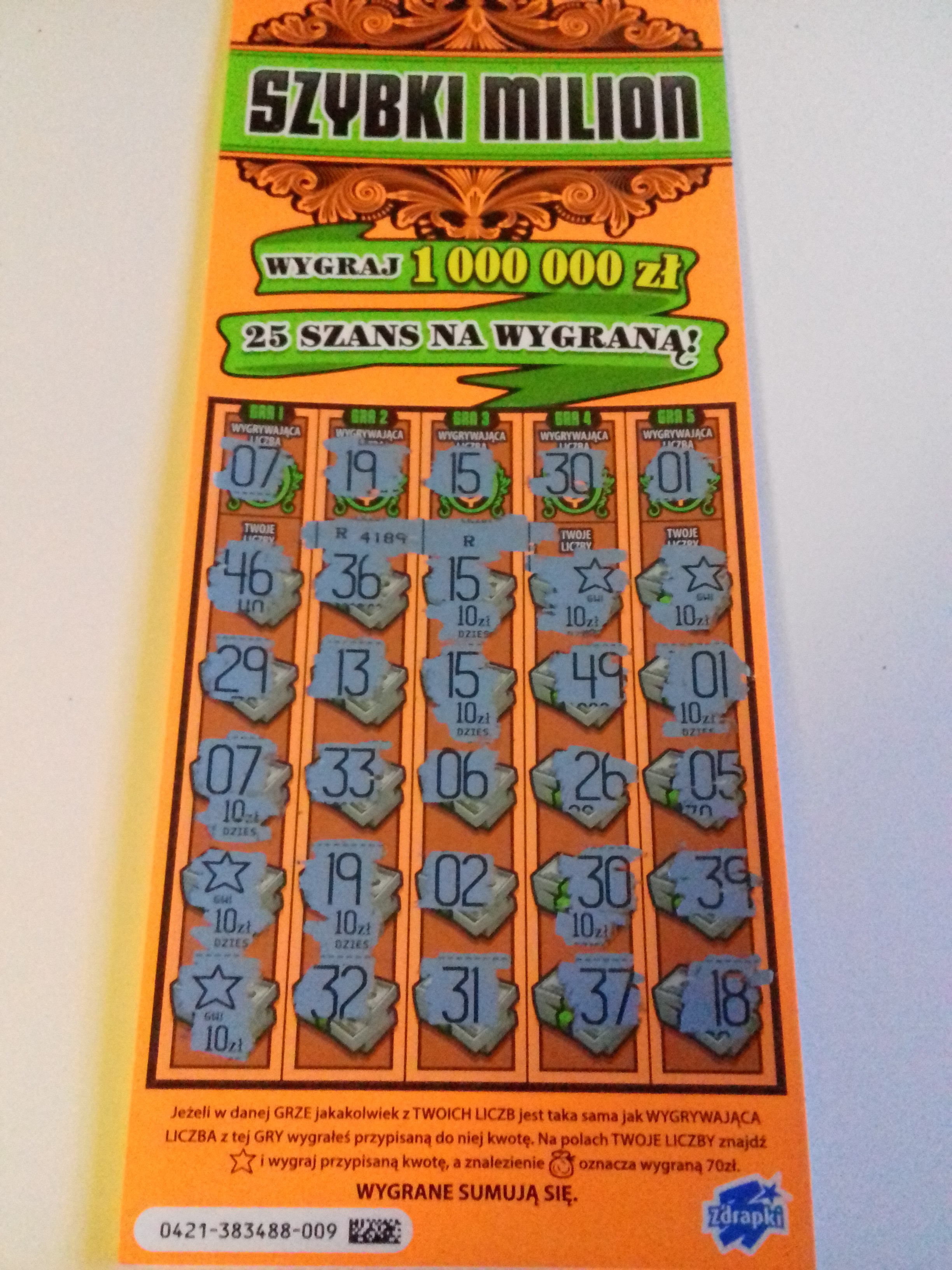 Po aktualizacji znowu 1 x 1 000 zł spadło. Zdrapka ma wzięcie ^^