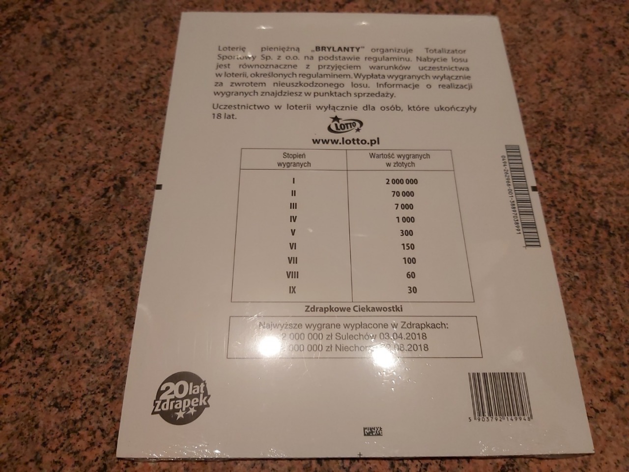 kupowałam z jednej paczki po 1 sztuce najpierw numer 5 0zł później 9 0zł dziś numer 3 i wpadło 60 zł nie lubi mnie ta zdrapka