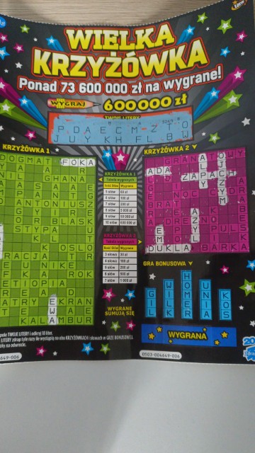 Do zdrapki NDR dobrałam dziś 3 Wielkie Krzyżówki i bingo