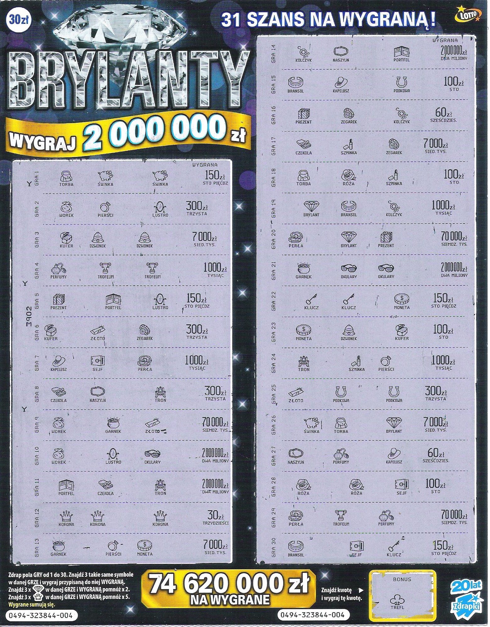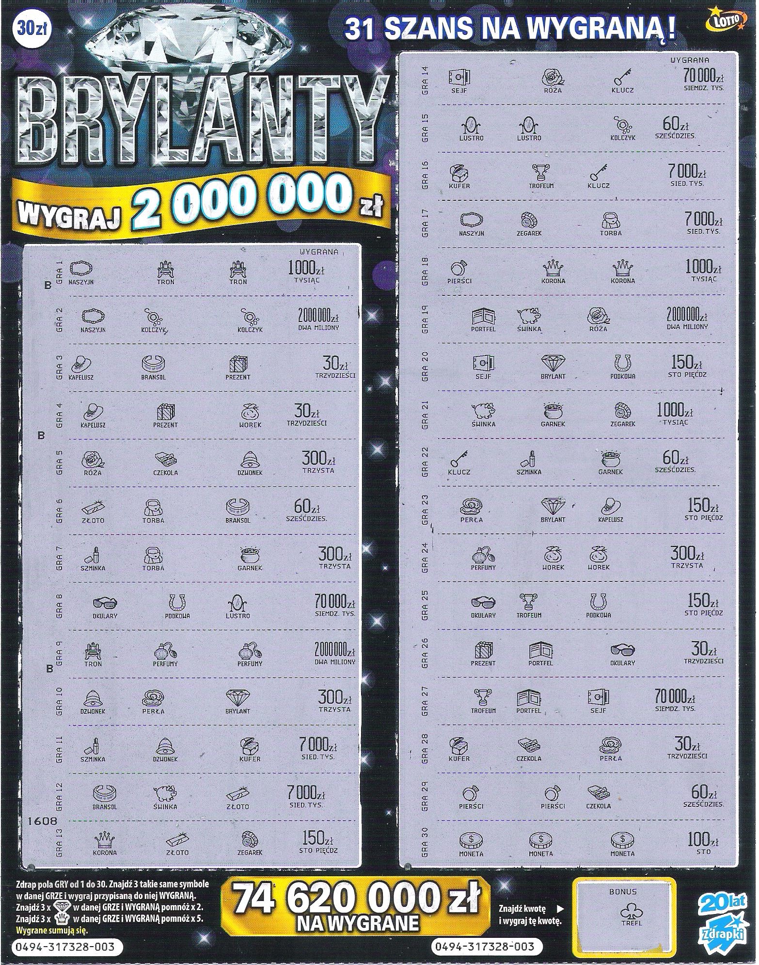 Mnie ta zdrapka nie lubi. Kupiłem jej już w sumie kilkadziesiąt i nic powyżej stówy nie trafiłem.