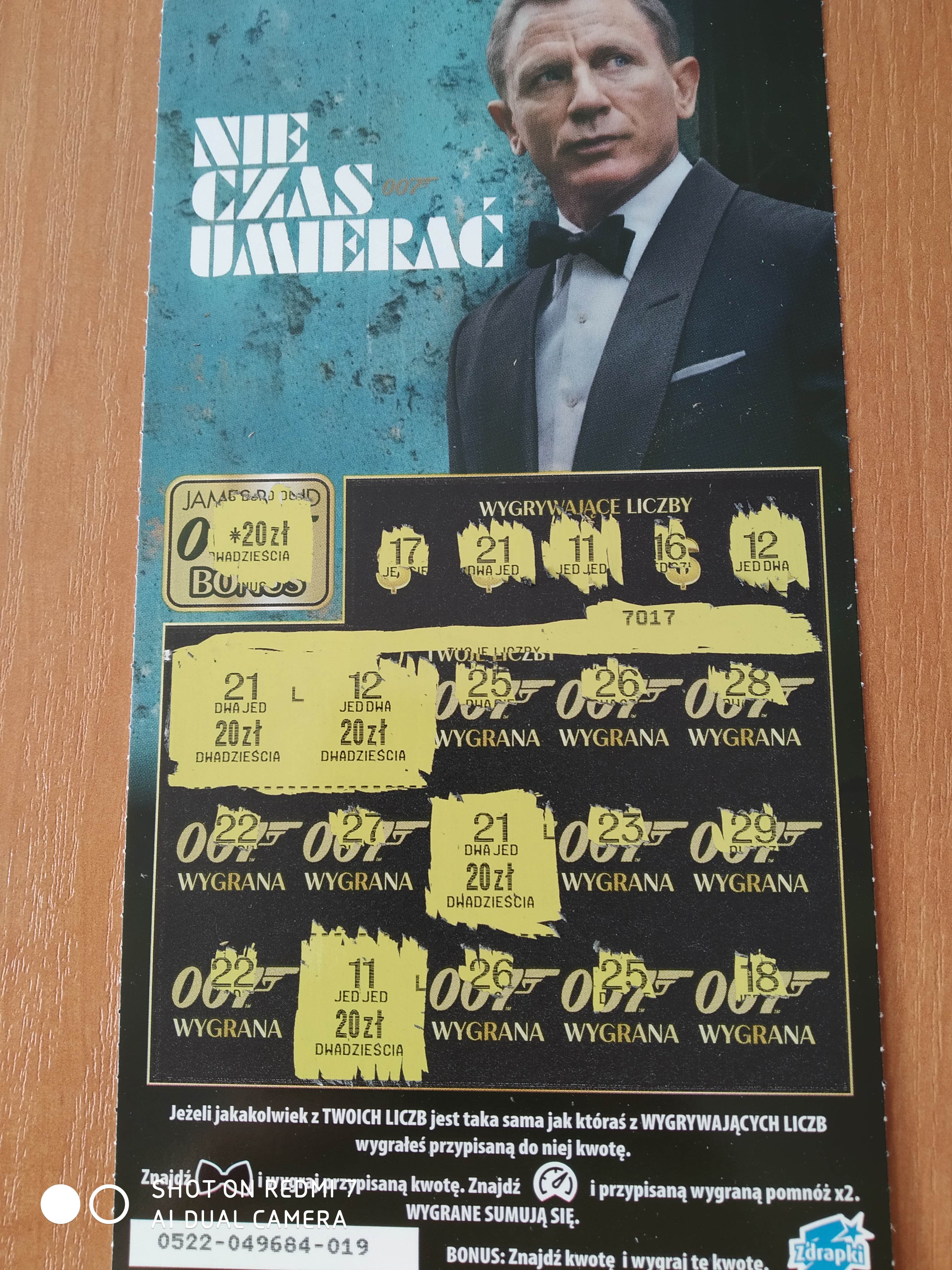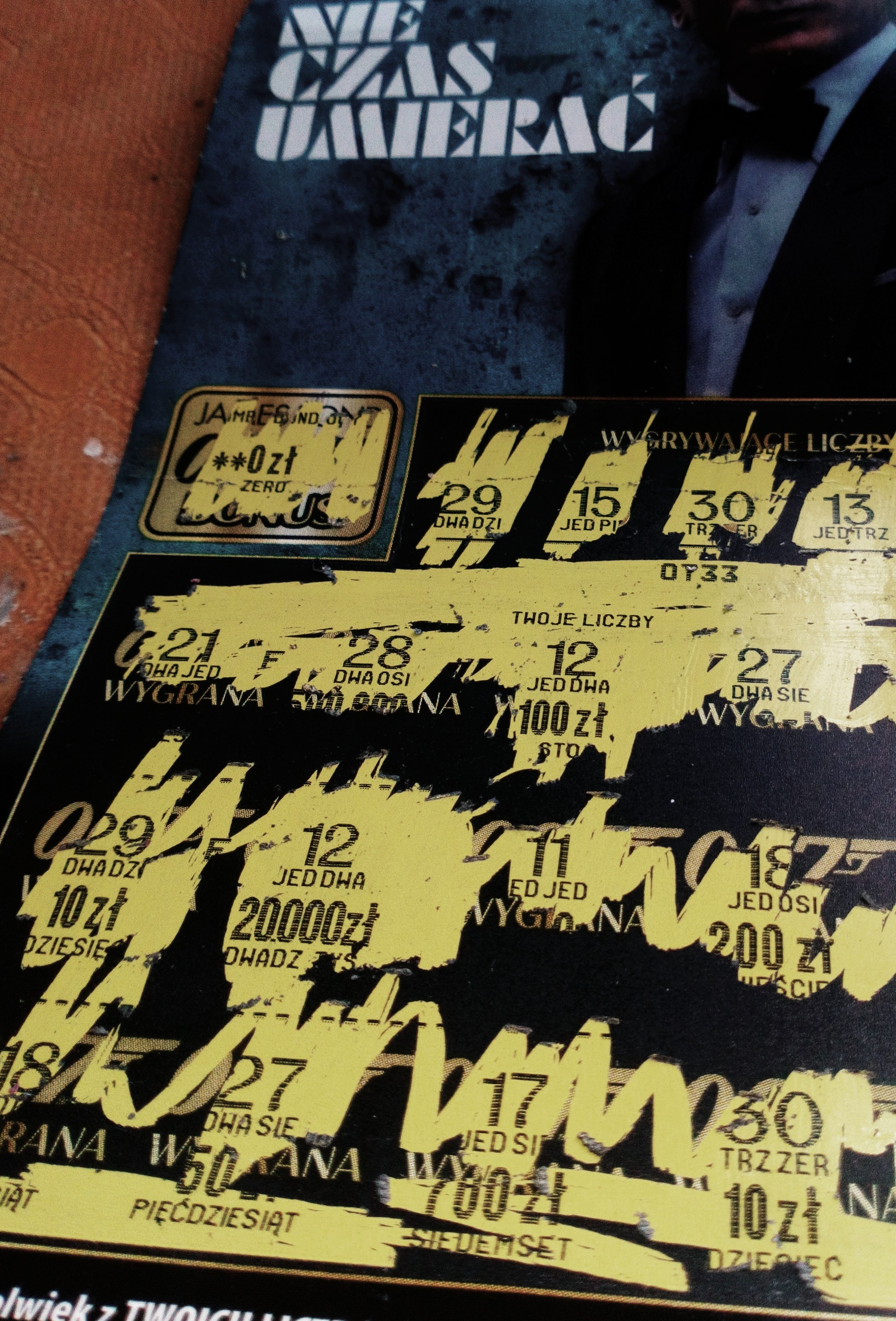 W dobie panującej epidemii zdrapka z napisem "nie czas umierać" wydawała mi się bardzo na czasie, więc kupiłem w sumie 3 sztuki - niestety same puste. Drapie się okropnie - nie kupie już chyba tego wynalazku.