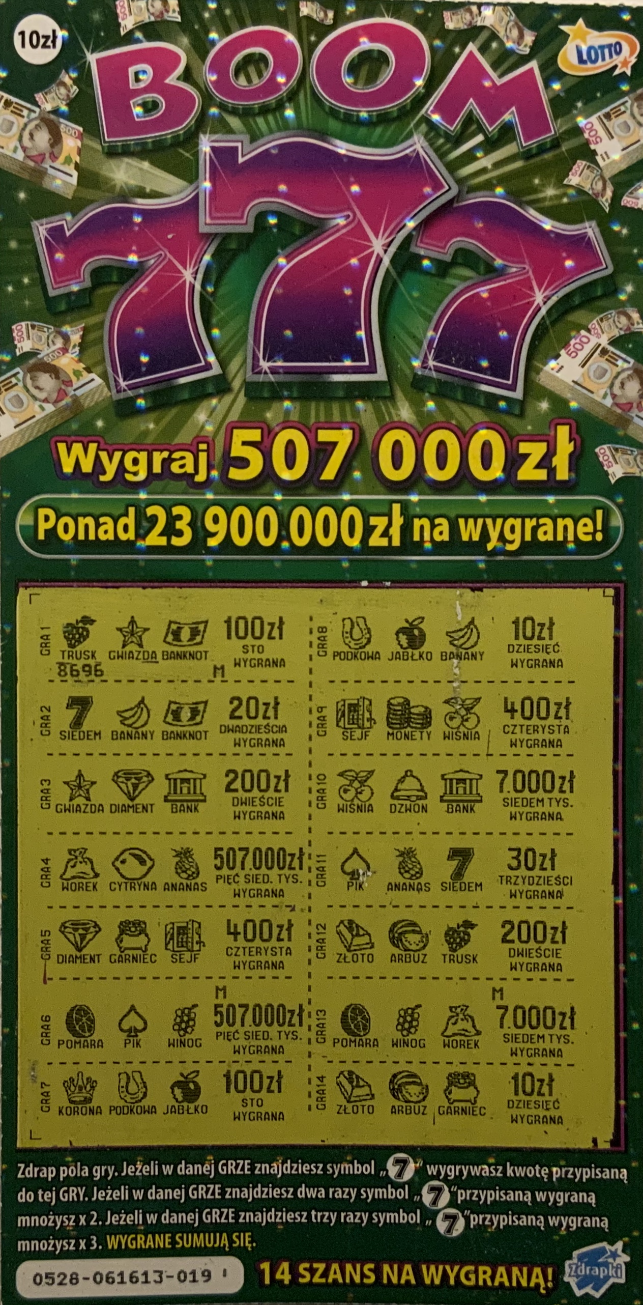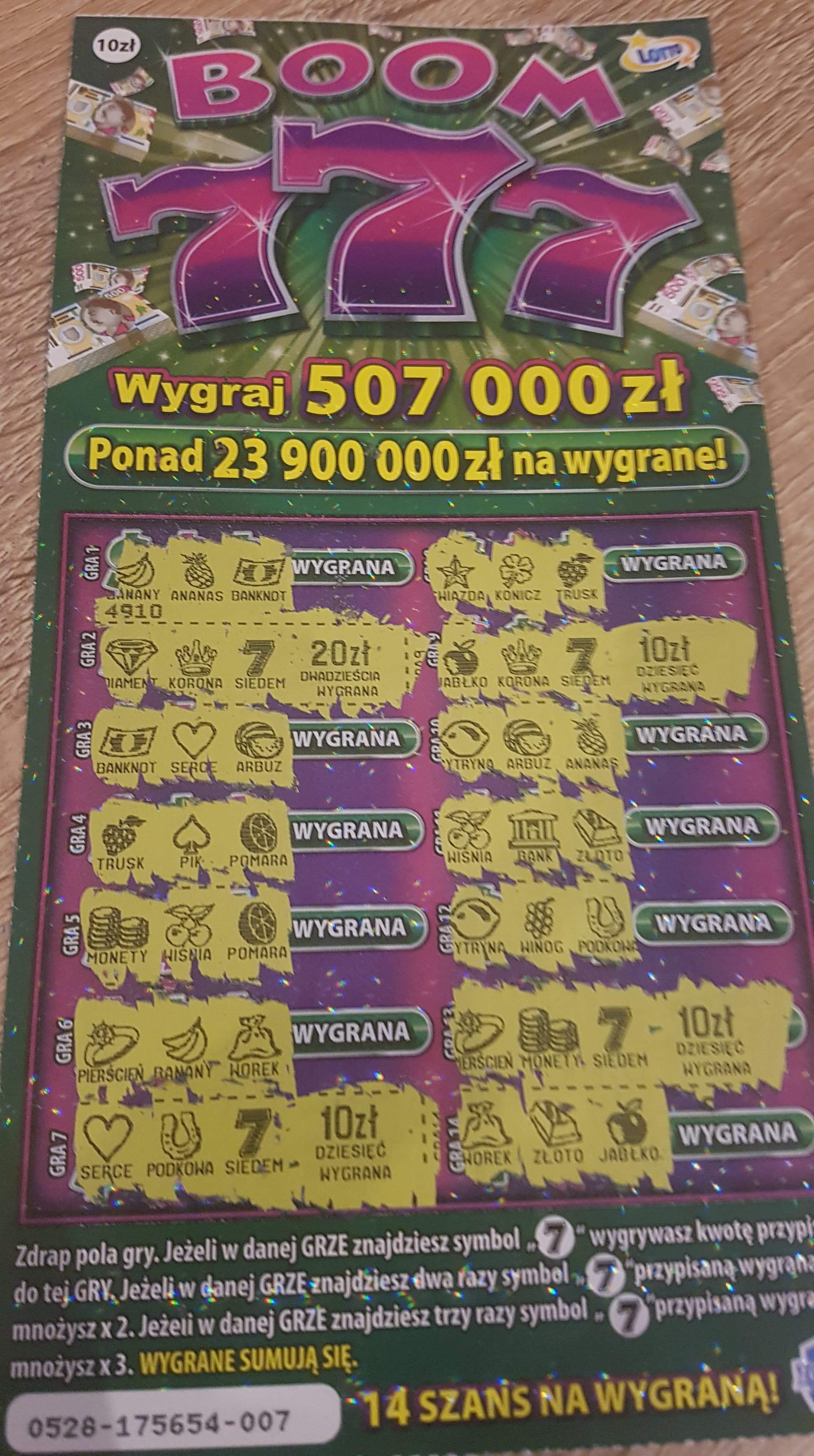 Jedna z moich ulubionych zdrapek dała 50 zł w numerze 4. Zdrapkę wymieniłam w innym punkcie i z całej nowej paczki pan wyjął mi nr 12 w którym było 30 zł.