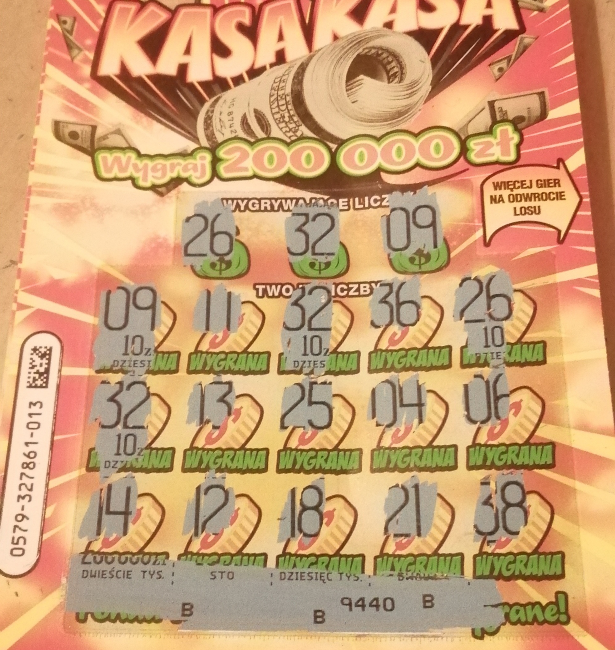 Poraz pierwszy w tej zdrapce 50, miałem wziąć tylko nr 7, ale warto było i 13, z tyłu 3 zegarki