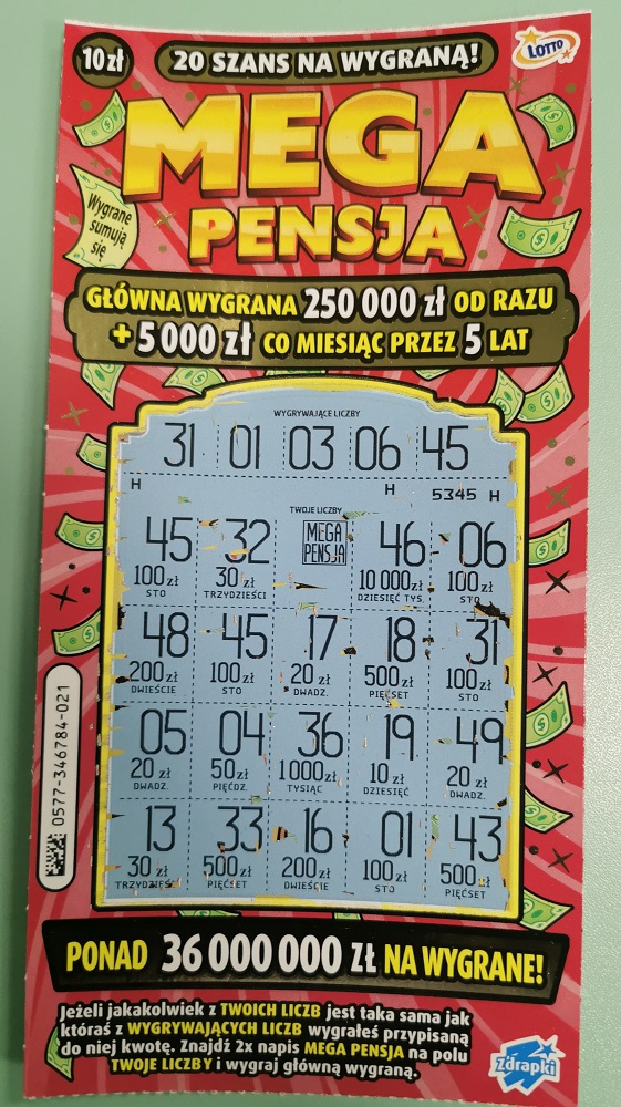 Gratuluję. Nie pamietam kiedy miałem 500 zł w zdrapce ale parę lat wstecz bywało często. Obecnie w zdrapkach to rarytas.