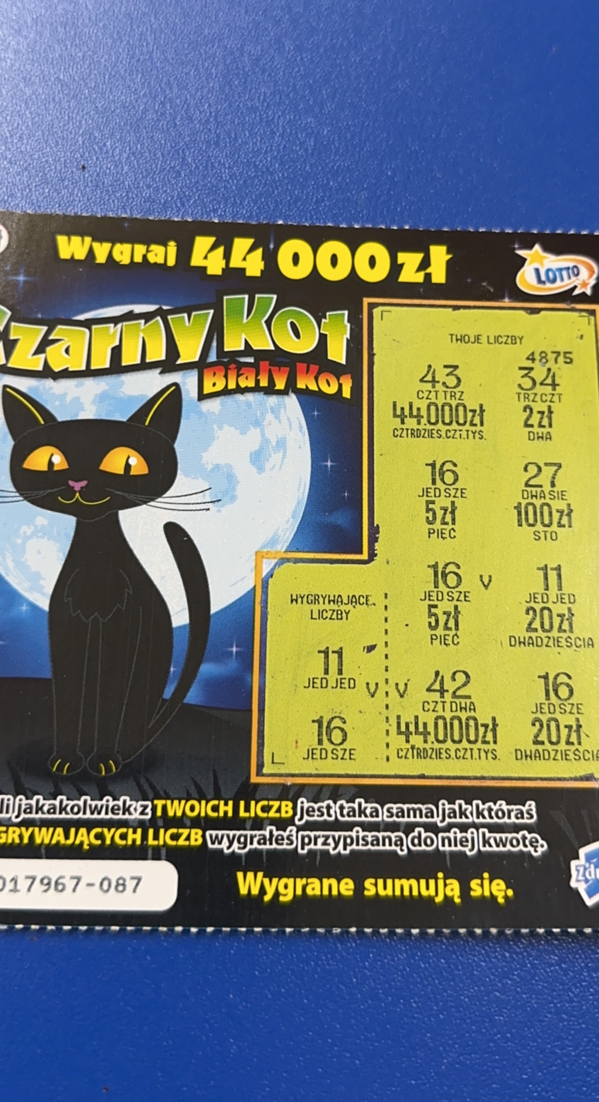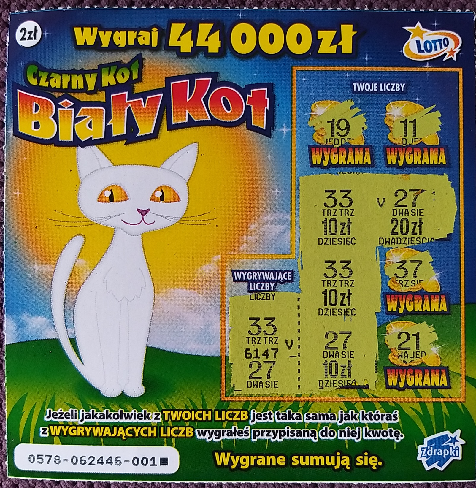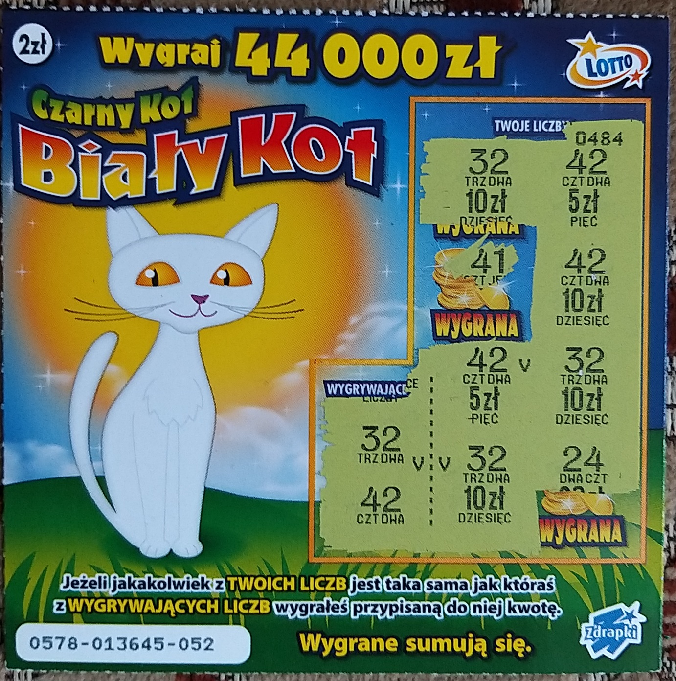 Kotek dał 50 ziko, jak dla mnie jedna z najlepszych zdrapek po 2 zł szkoda, że się kończy, już stówkę w nim miałem i wiele razy po 50.